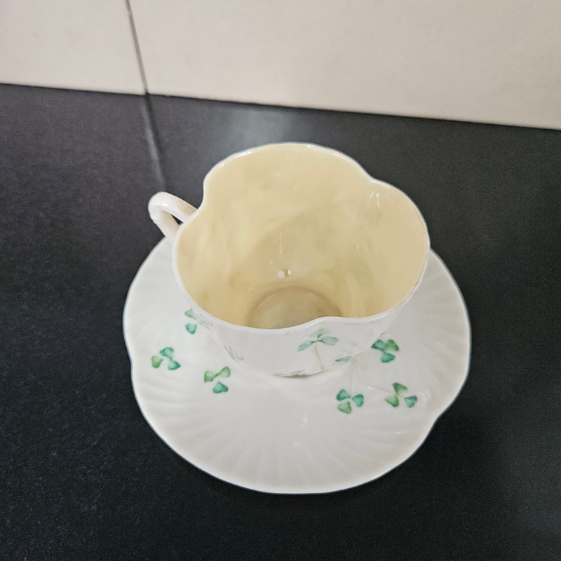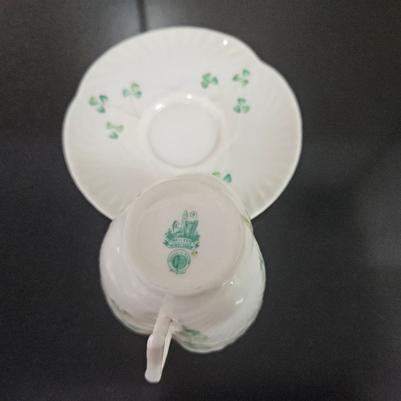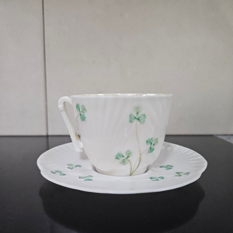 Belleek Coffee Cup and Saucer In Shell Pattern