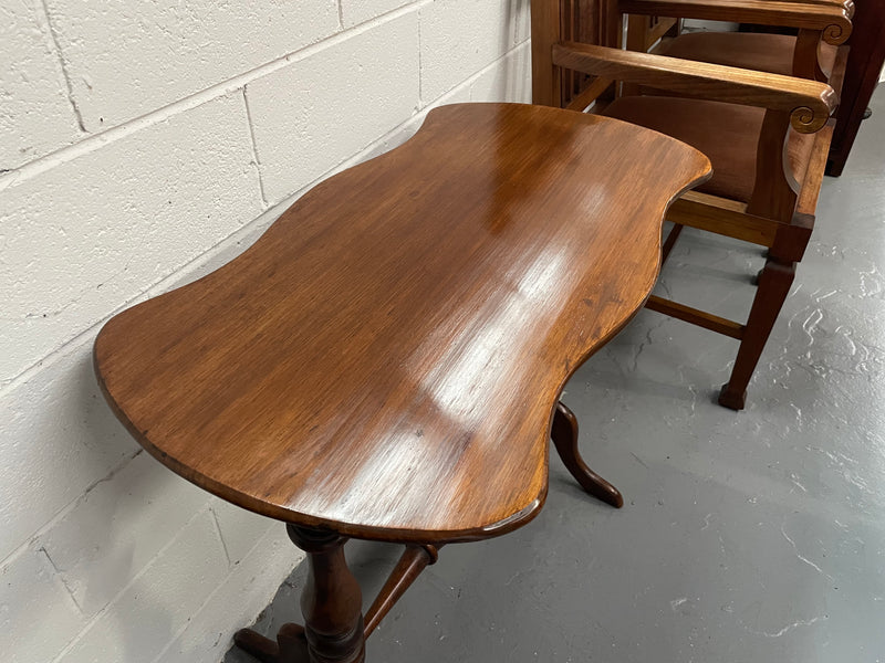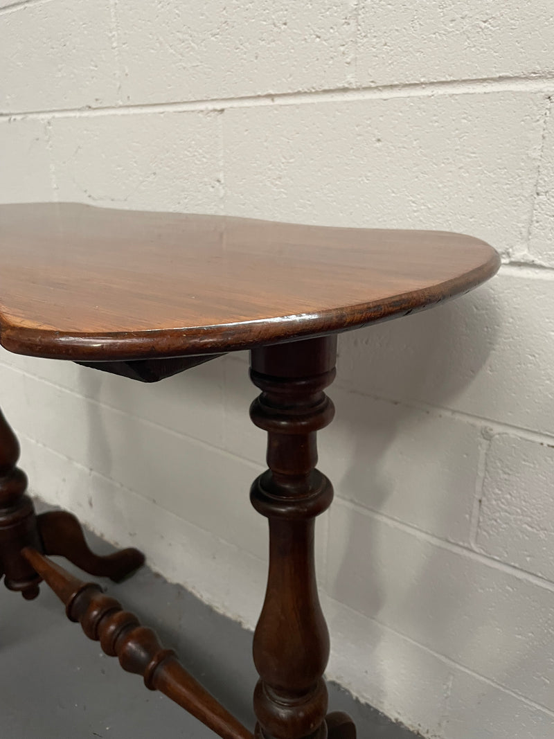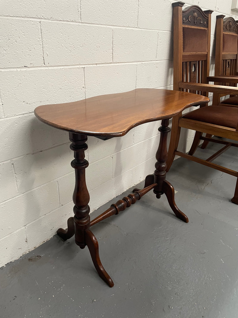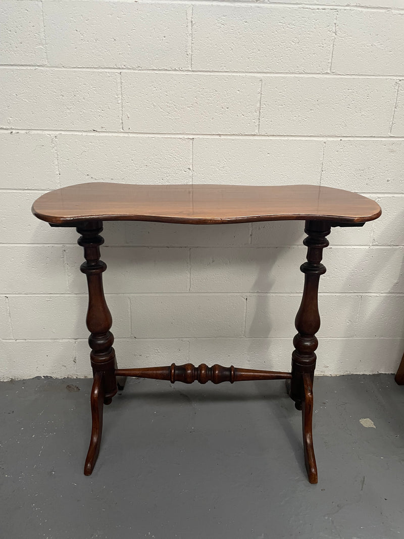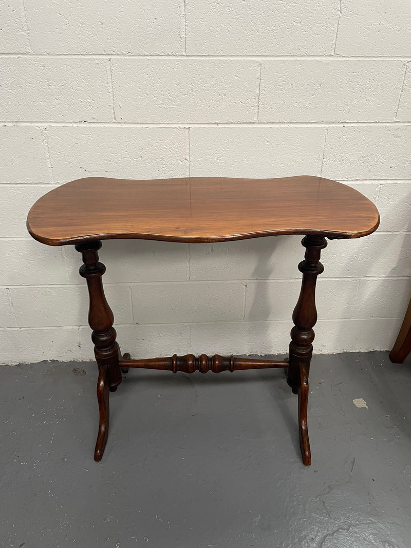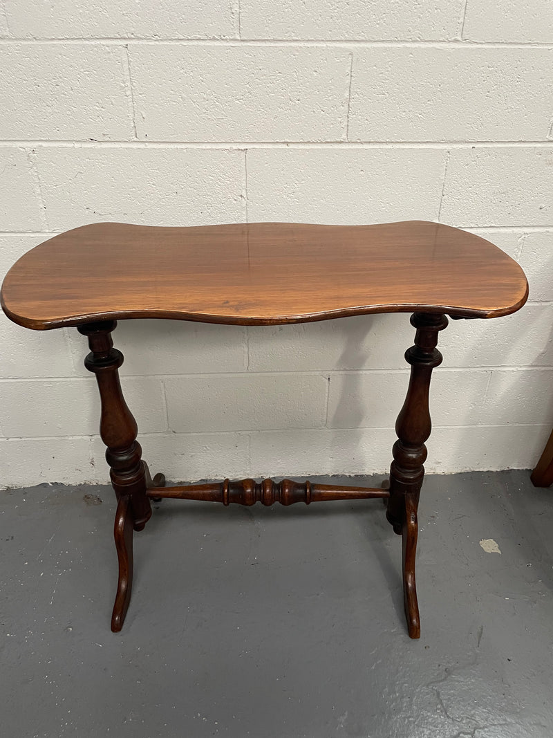 Australian Blackwood occasional/side table, with turned legs & stretcher supporting a top with a lovely shaped edge. Circa 1880. Sourced locally and in good original condition. Please view photos as they help to form part of the description and condition.