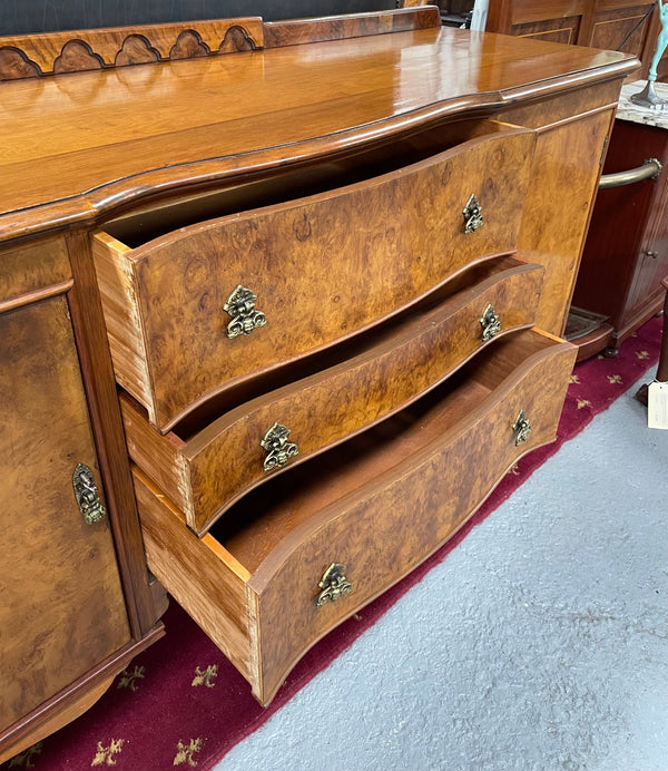 Burr Walnut Sideboard With Three Drawers & Two Doors Burr Walnut sideboard with three drawers and two doors. It also comes with a glass top if required. It has been sourced locally and in good original condition.