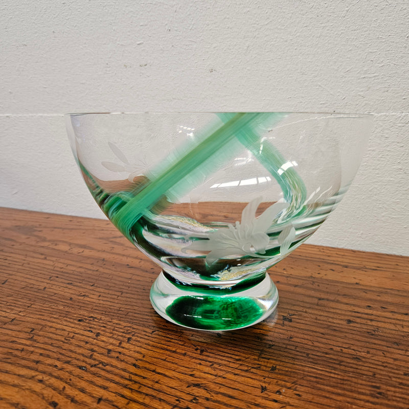 Stunning Caitness green swirl & etched glass vase with floral design. It is in good original condition. Please see photos as they form part of the description.