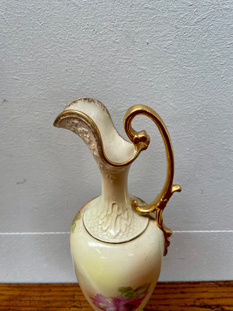 Charming hand painted Edwardian urn shaped vase depicting floral arrangement of roses with gilt trim. Fabulous shape. In good original condition. Please see photos as they form part of the description.