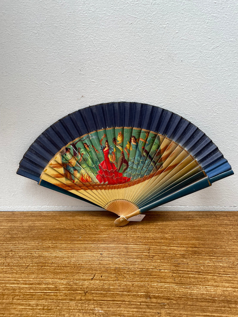 Charming vintage wooden fan painted with Spanish dancing scene. In good original condition. Please see photos as they form part of the description.