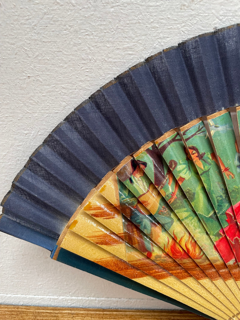 Charming Vintage Wooden Fan Painted With Spanish Dancing Scene