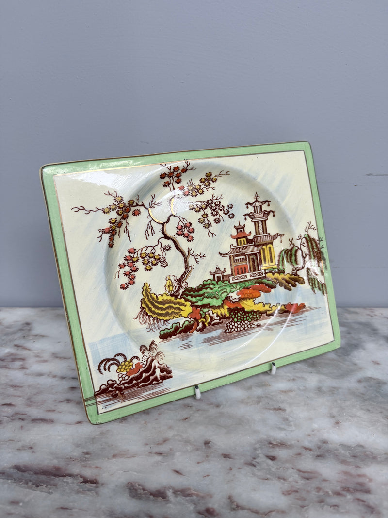 Rare Clarice Cliff design Biarritz plate with a oriental design, it is signed to the back. It has a wall hanging support attached. It is in good original condition. Please see photos as they form part of the description.