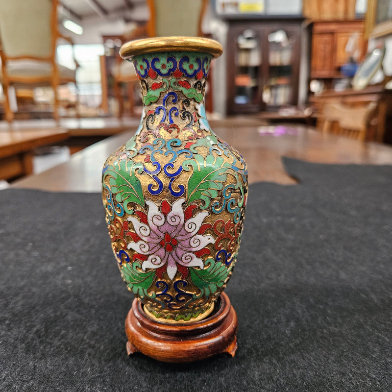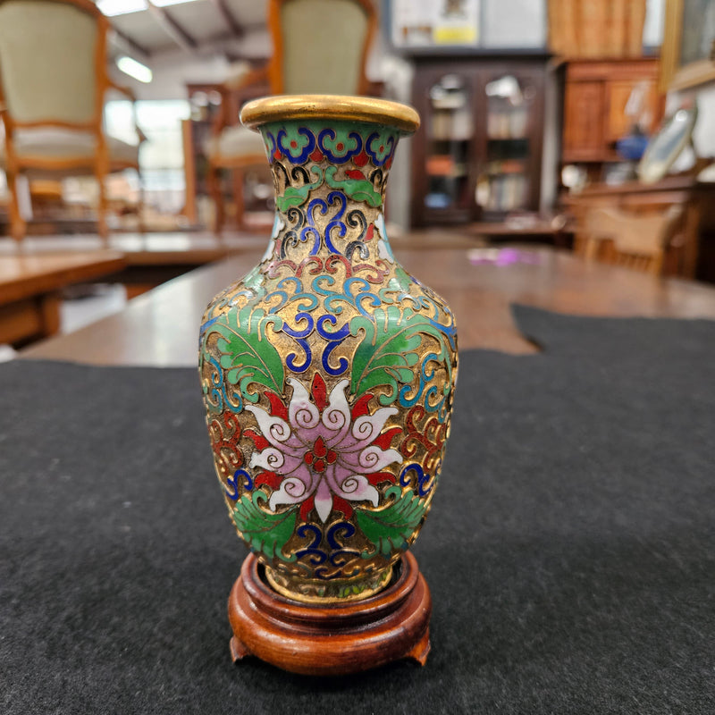 Cloisonné Softly Coloured Enamel and Gilt Vase