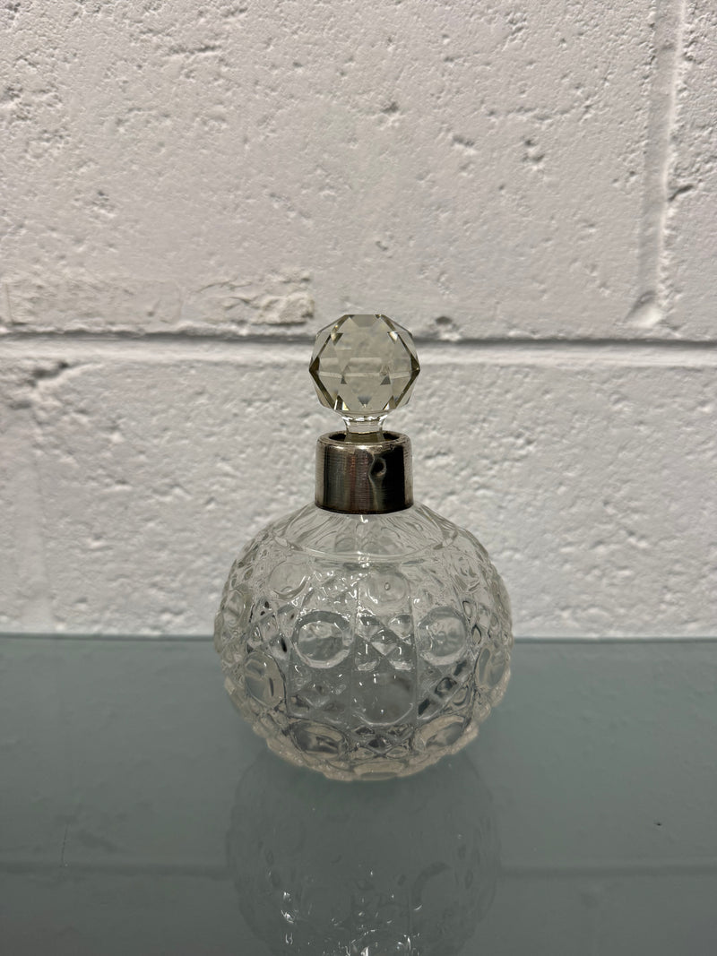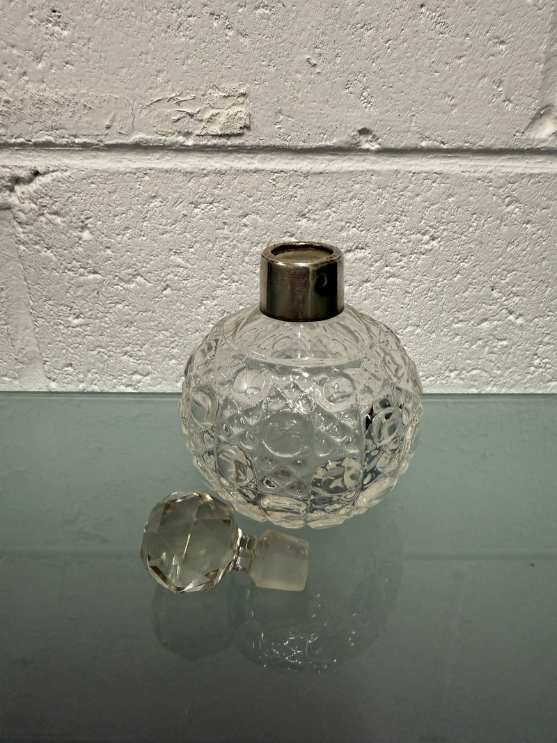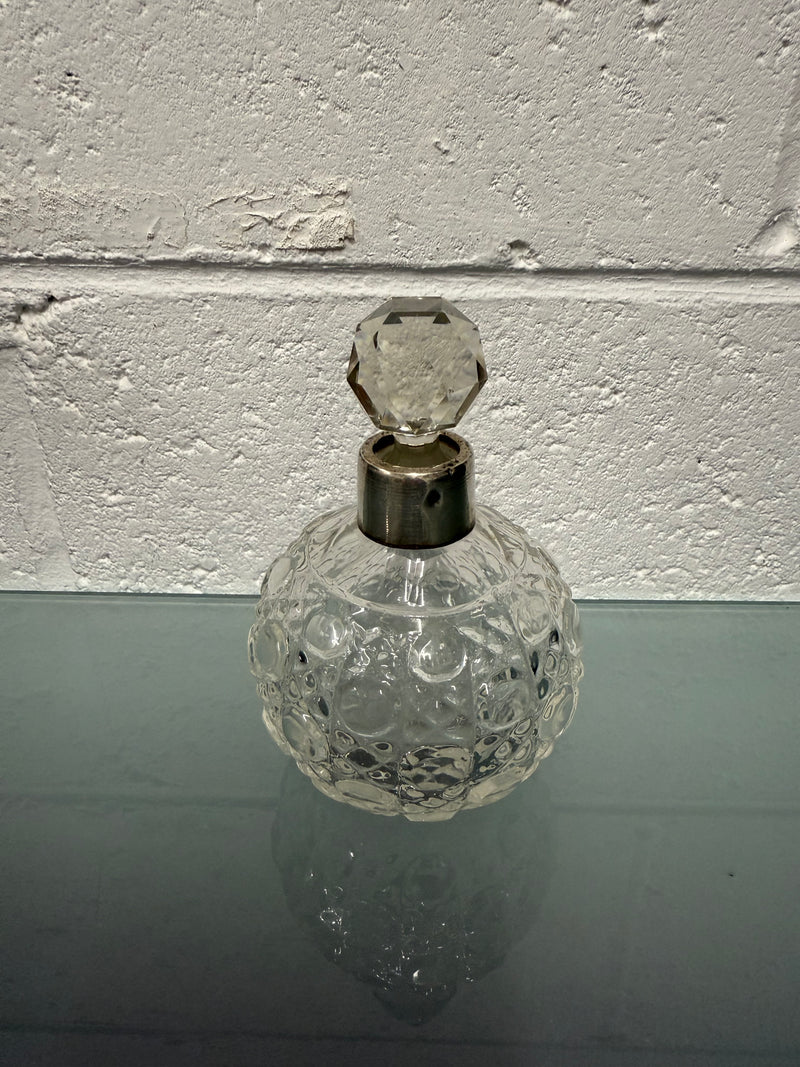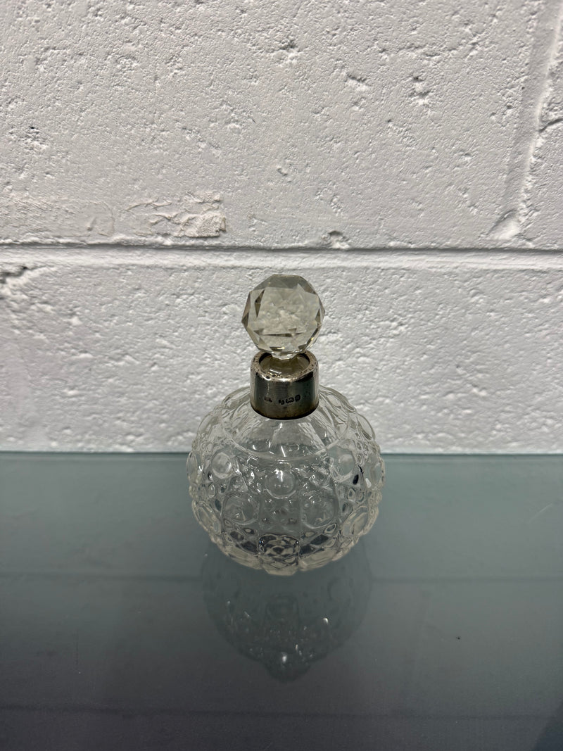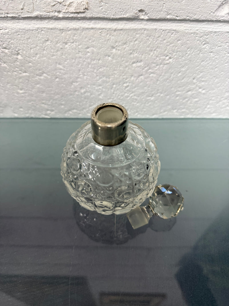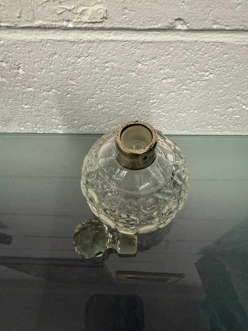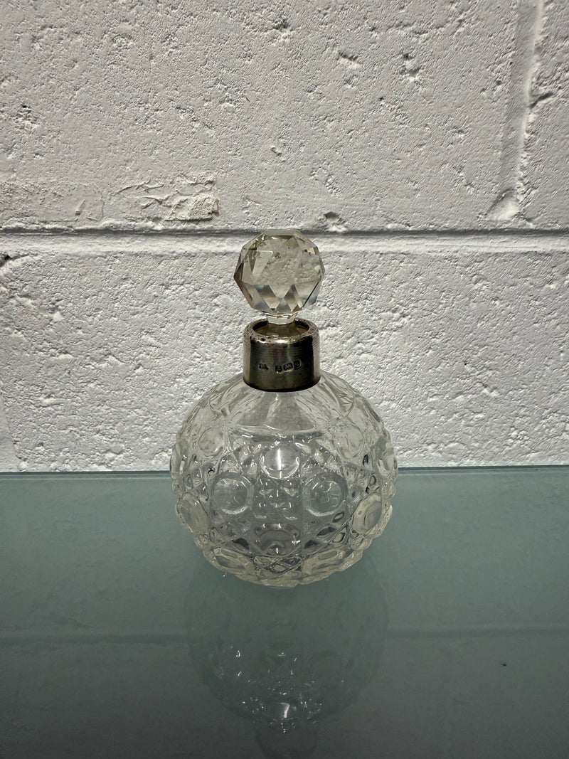 Cut Glass Perfume Bottle With Sterling Silver Collar