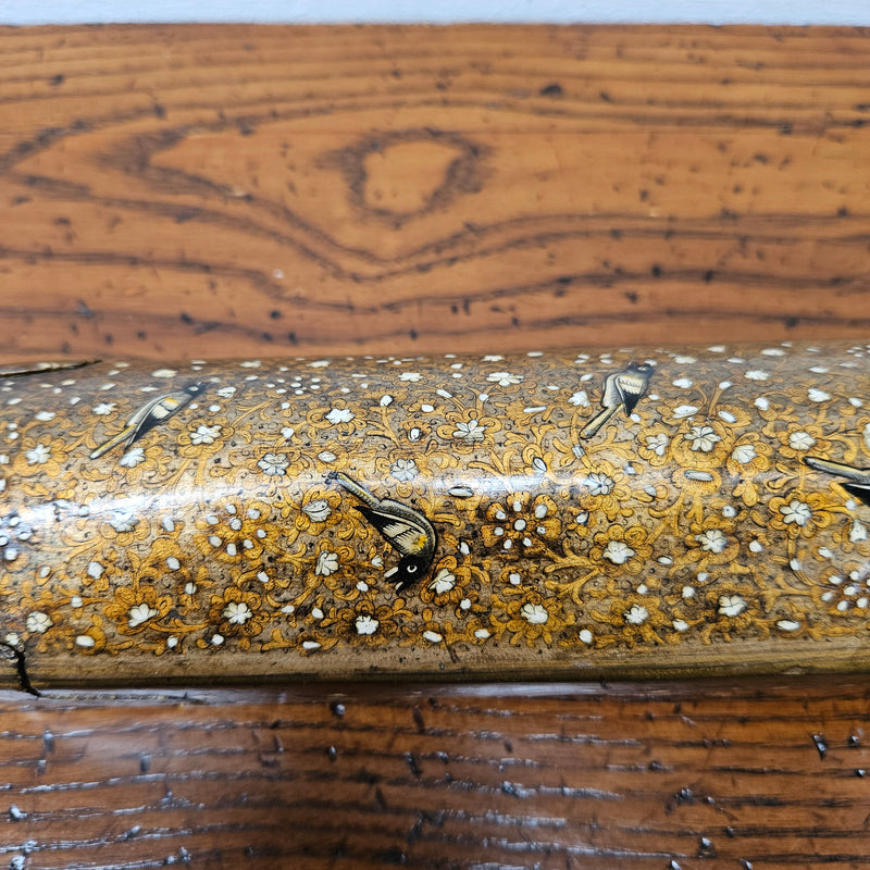 A superbly decorated Papier Mache lacquered qalamdan "Kasmir", Circa first half 19th Century. It has a decoration of birds and floral details. It is in very good condition. C1820's. Please see photos as they form part of the description and condition.