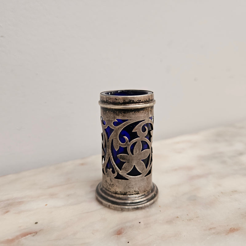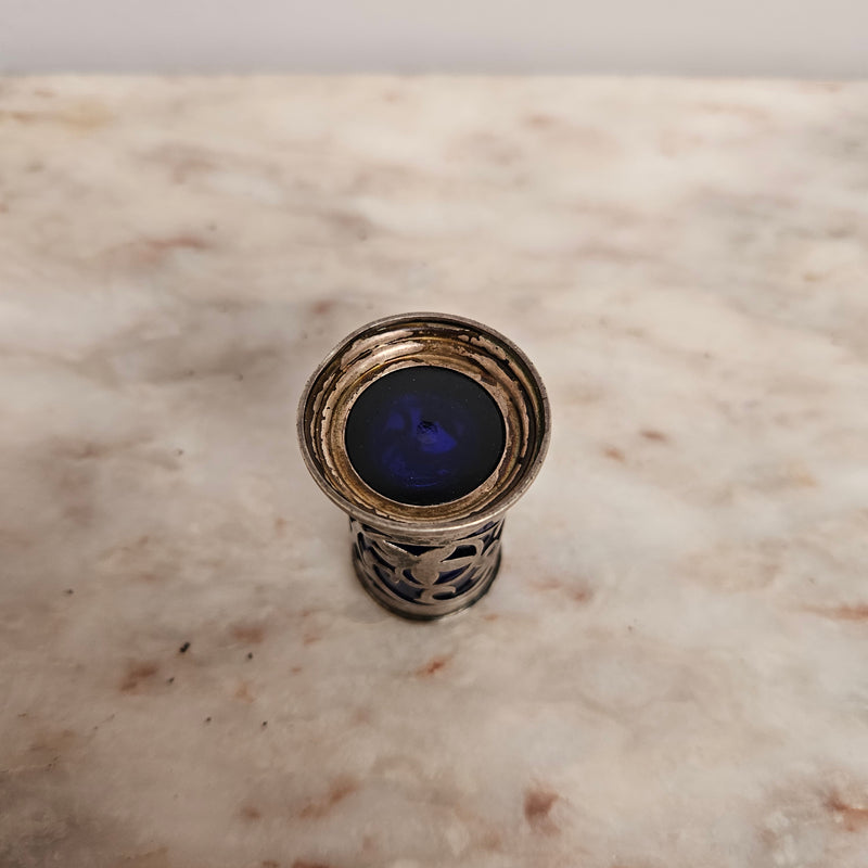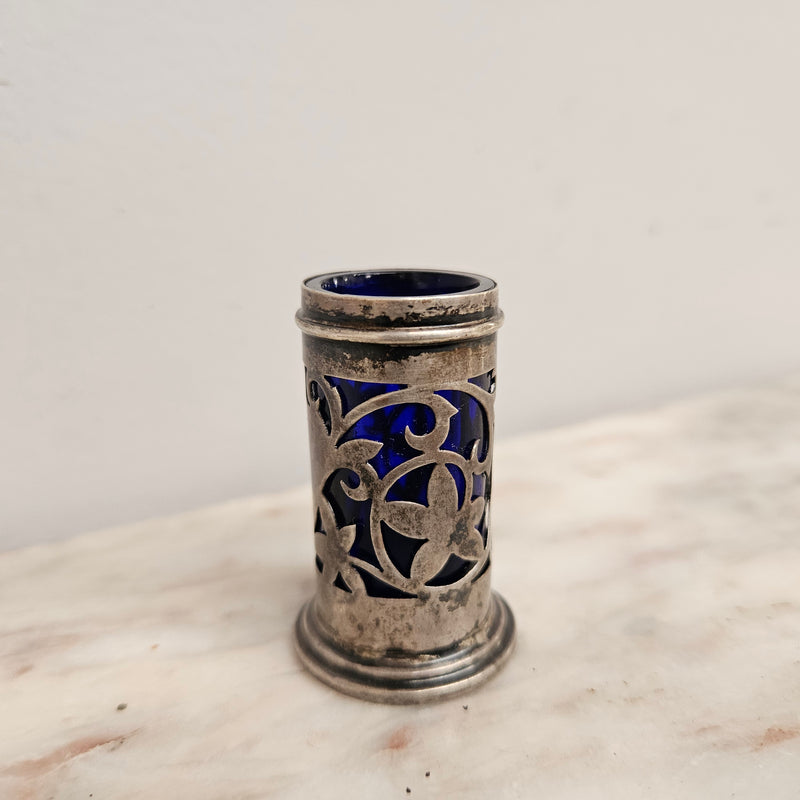 Edwardian Birmingham Silver & Bristol Blue Toothpick Holder