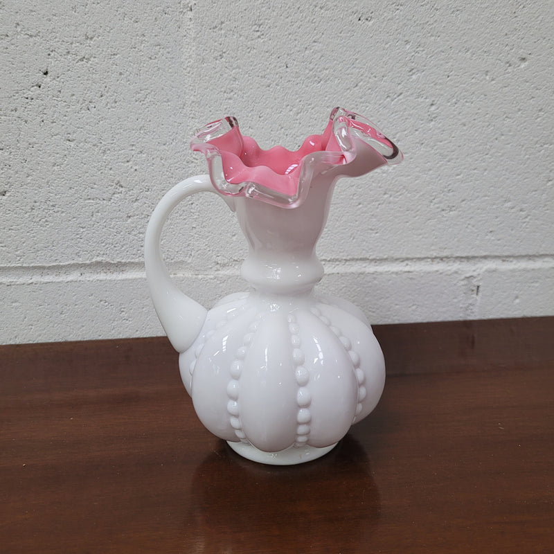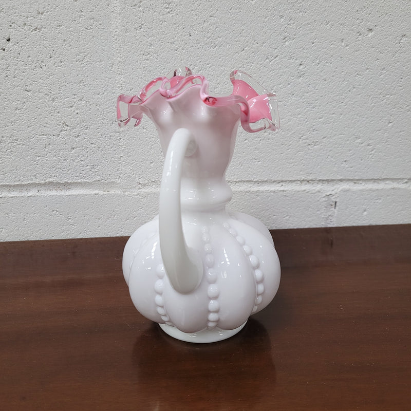 Fenton Silver Crest Pink Cased Milk Glass Melon Pitcher Vase.