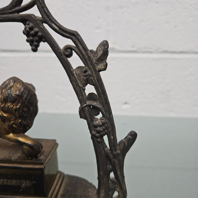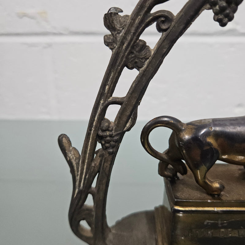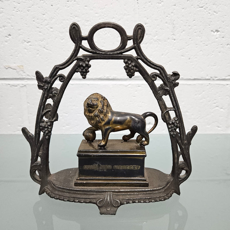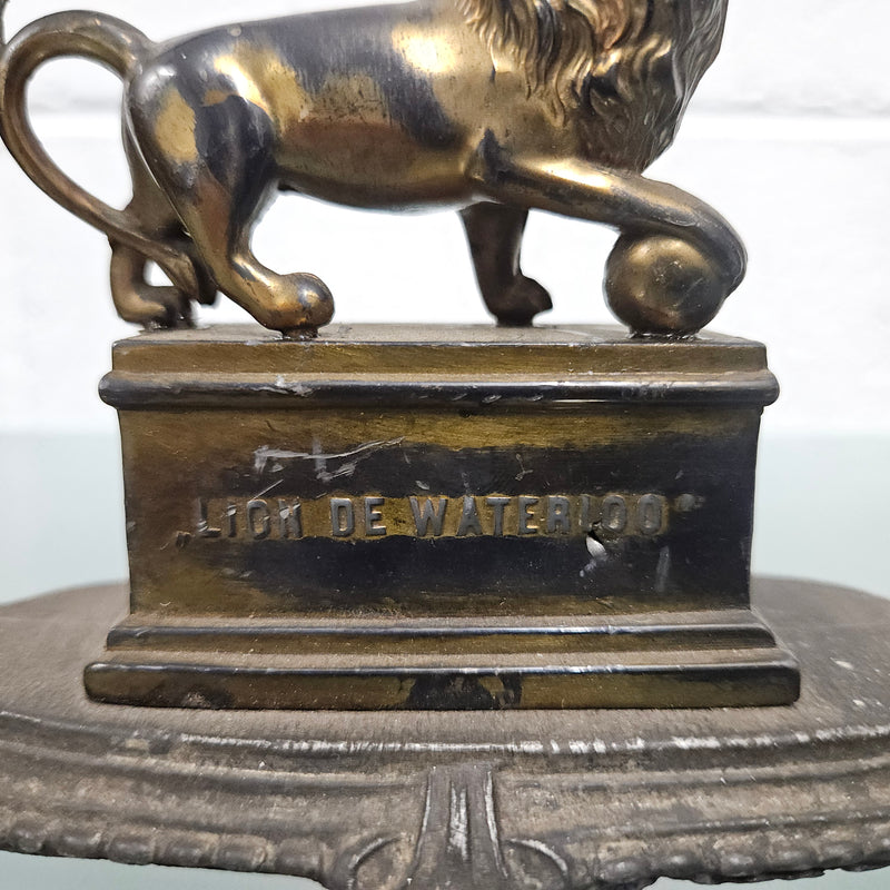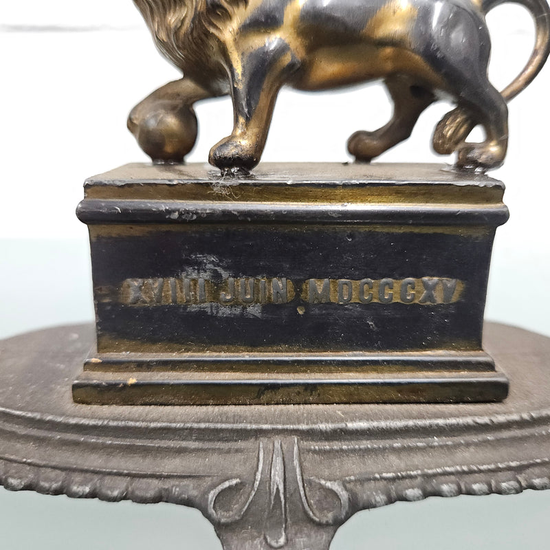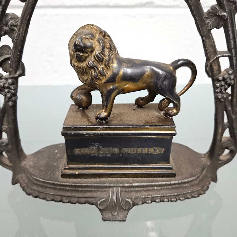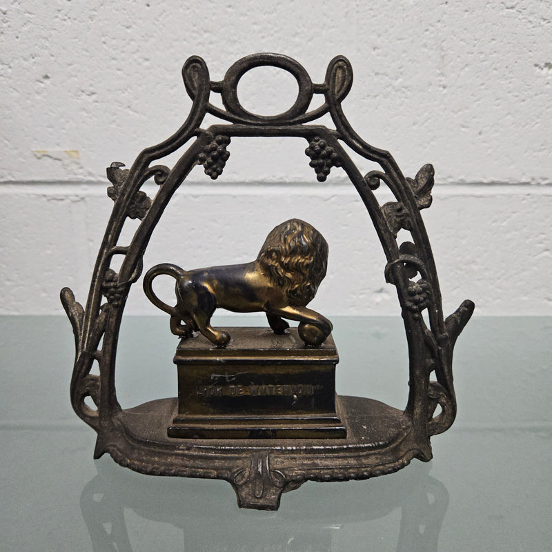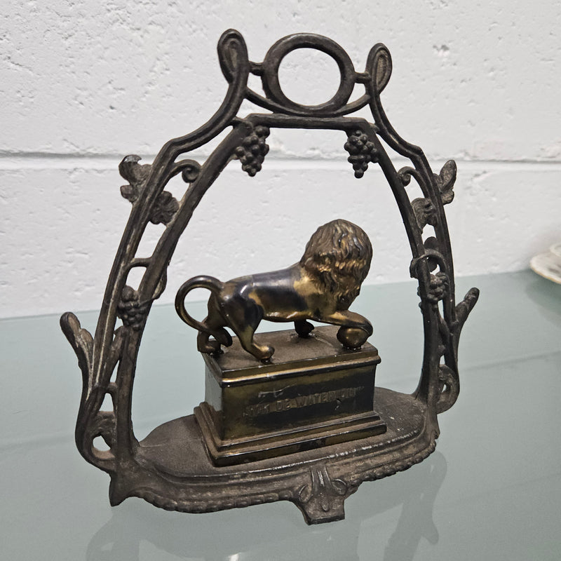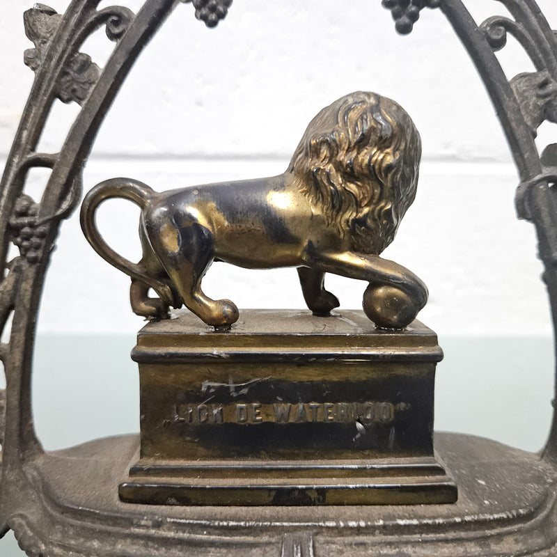 Heavy French Antique metal souvenir of The Battle or Waterloo. It has a lion on a podium in the center surrounded by vine and grape decoration. It is in good original condition. Please see photos as they form part of the description.