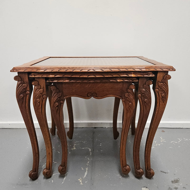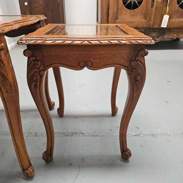 French Oak Three Piece Nest of Tables With Cane Inserts