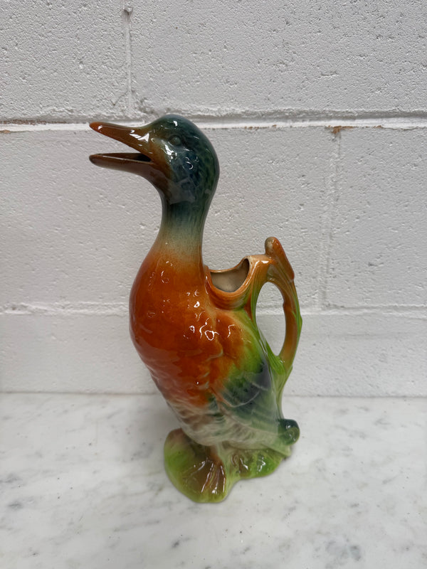 Amazing French Saint Clement Majolica duck pitcher jug, it is signed to the base. It is in good original condition. Please see photos as they form part of the description.