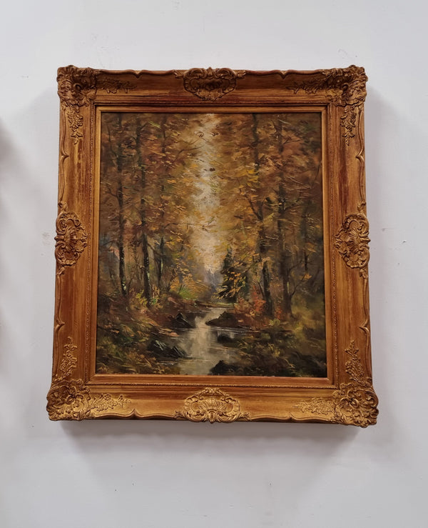 French signed oil on canvas depicting Impressionist Landscape in gilt frame. It is in good original detailed condition and has been sourced from France.