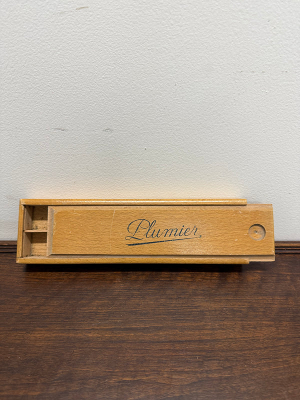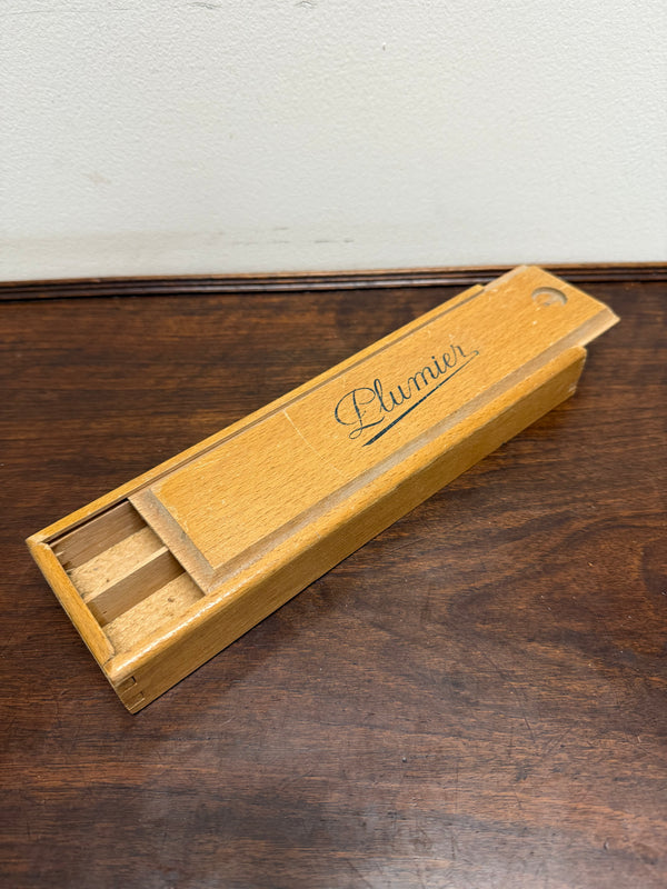 French 'Plumien' silky oak wooden pencil case box, it is in good original condition. Please see photos as they form part of the description.