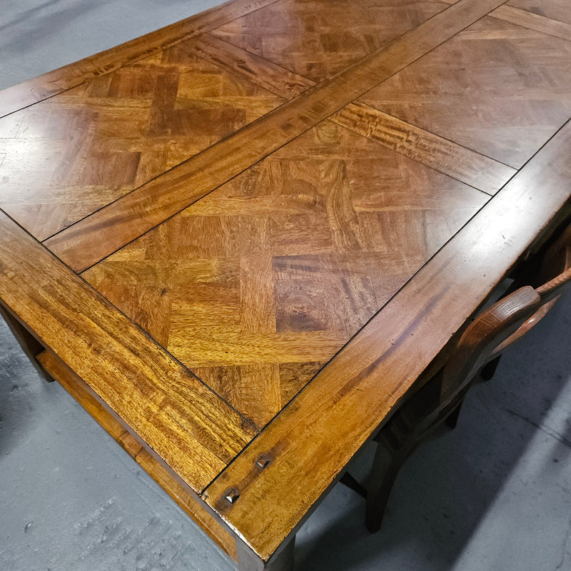French Style Parquetry Top Fruit wood Farmhouse Extension Table