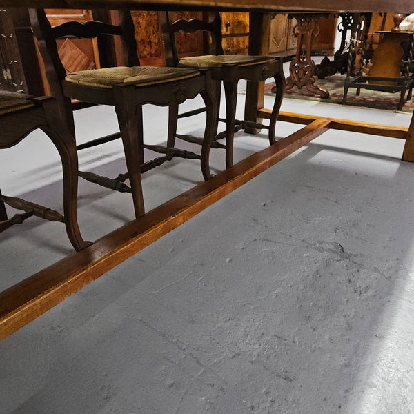 French style parquetry top reclaimed fruitwood farmhouse extension table. This amazing table has an extension on one side and when extended it is 264.5 cm long. In good original detailed condition.