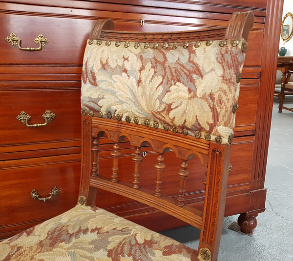 Lovely French Herny III walnut carved upholstered chair and in good condition.