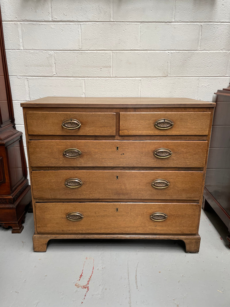 Charming Georgian period chest of 5 graduating drawers on bracket feet. C;1800. In good restored condition. Please see photos as they form part of the description,.