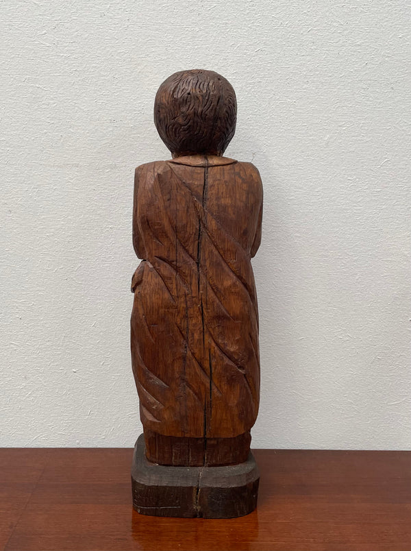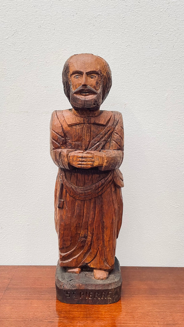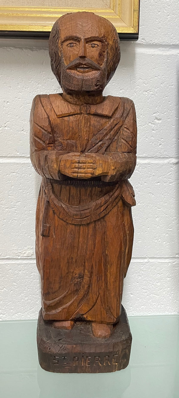 Hand Carved Antique Religious Wooden Statue of St. Pierre