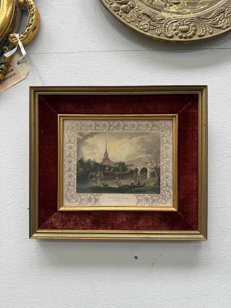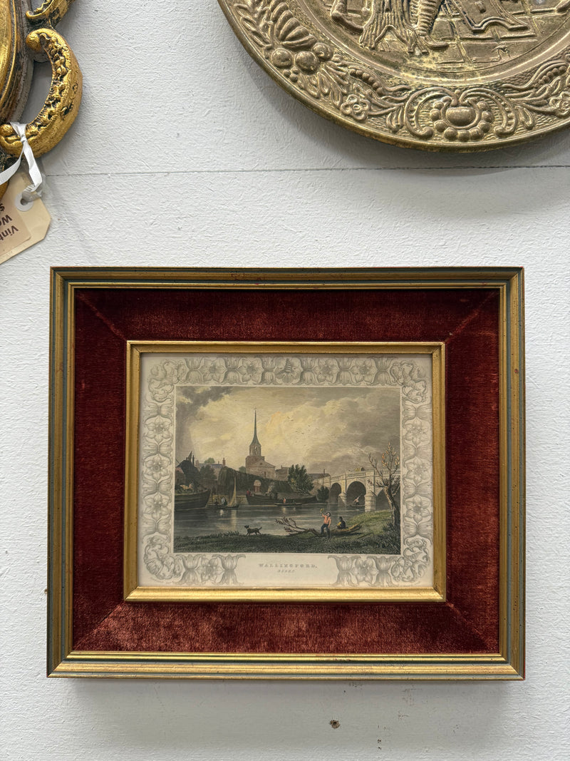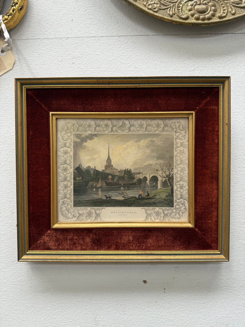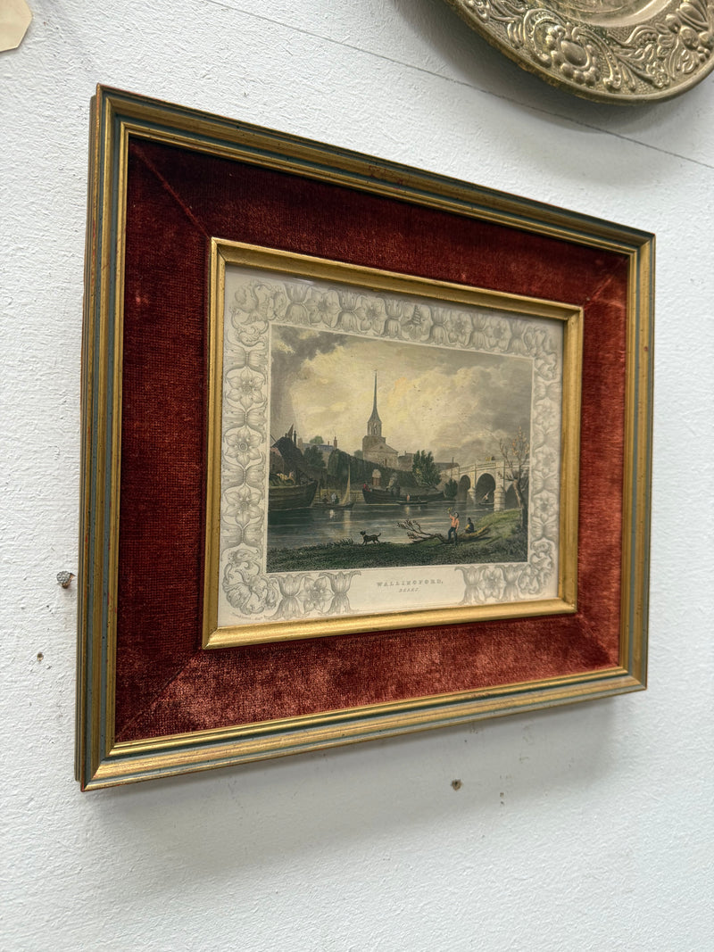 Very attractive hand coloured engraving of "Wallingford, Berks" in a beautiful velvet mounted gilt frame. In good original condition. Please see photos as they form part of the description.