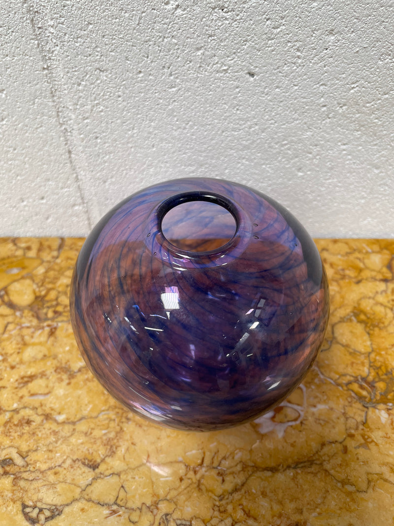 Lovely purple & blue glass globe vase, Isle of Wright studio, Heather pattern/range. It is in good original condition. Please see photos as they form part of the description.