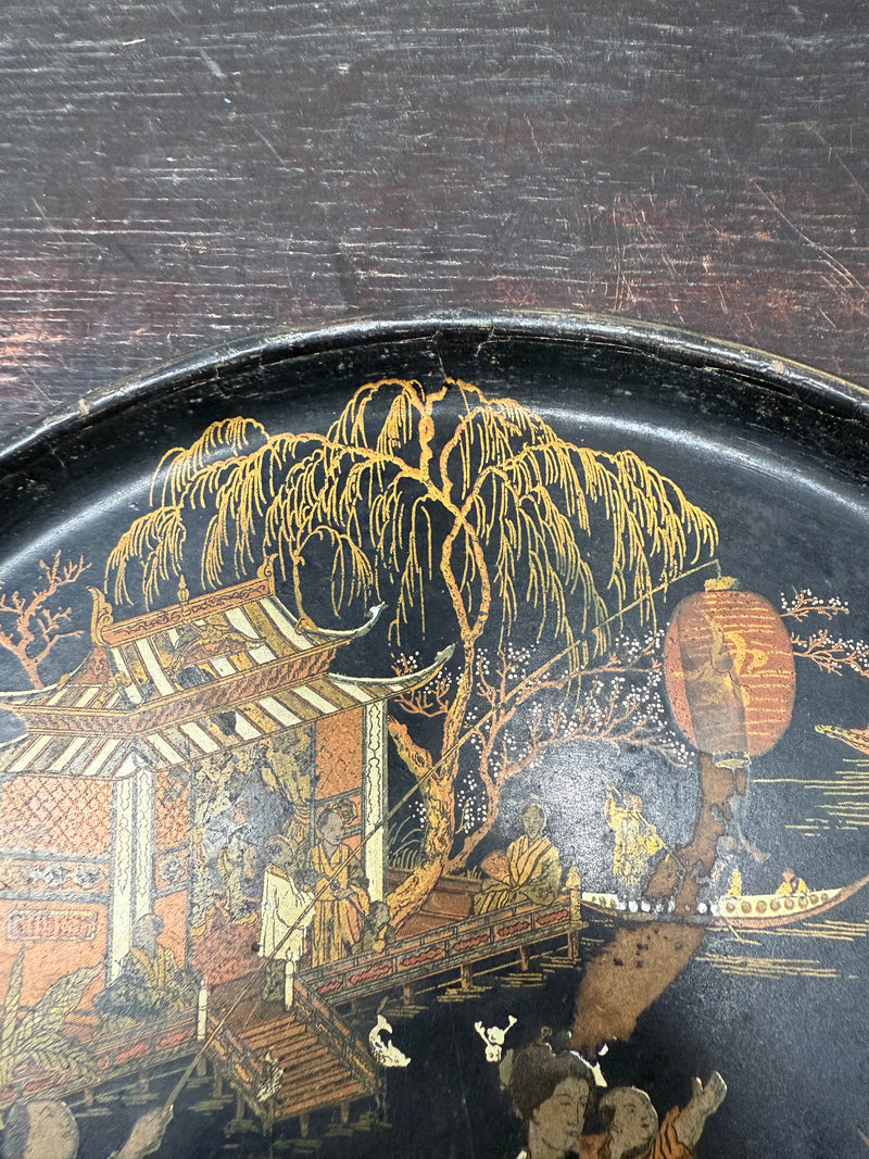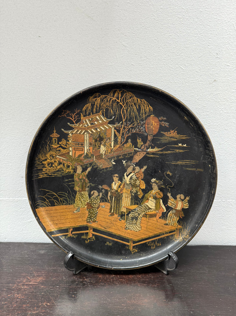 19th Century Japanese lacquer hand painted tray featuring a family river scene. In good original condition. Please see photos as they form part of the description.
