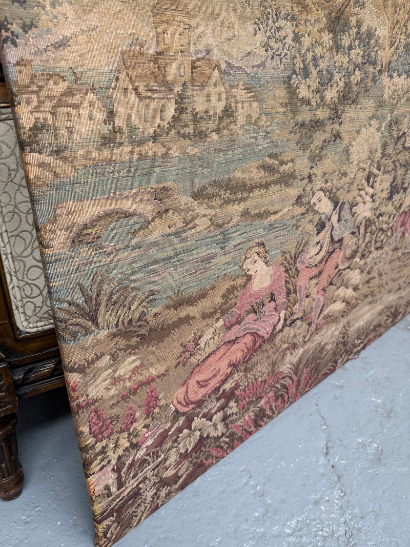 Impressive large 19th Century Flemish tapestry depicting a river scene in citrus toning's. In good original condition. Please see photos as they form part of the description.