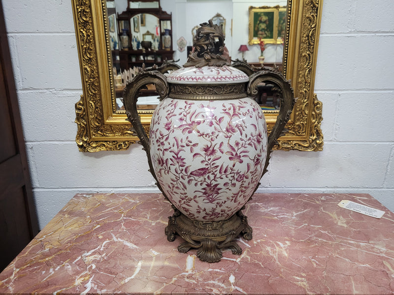 Large Attractive Ceramic Ornamental Lidded Jar with Stunning Ormolu Features