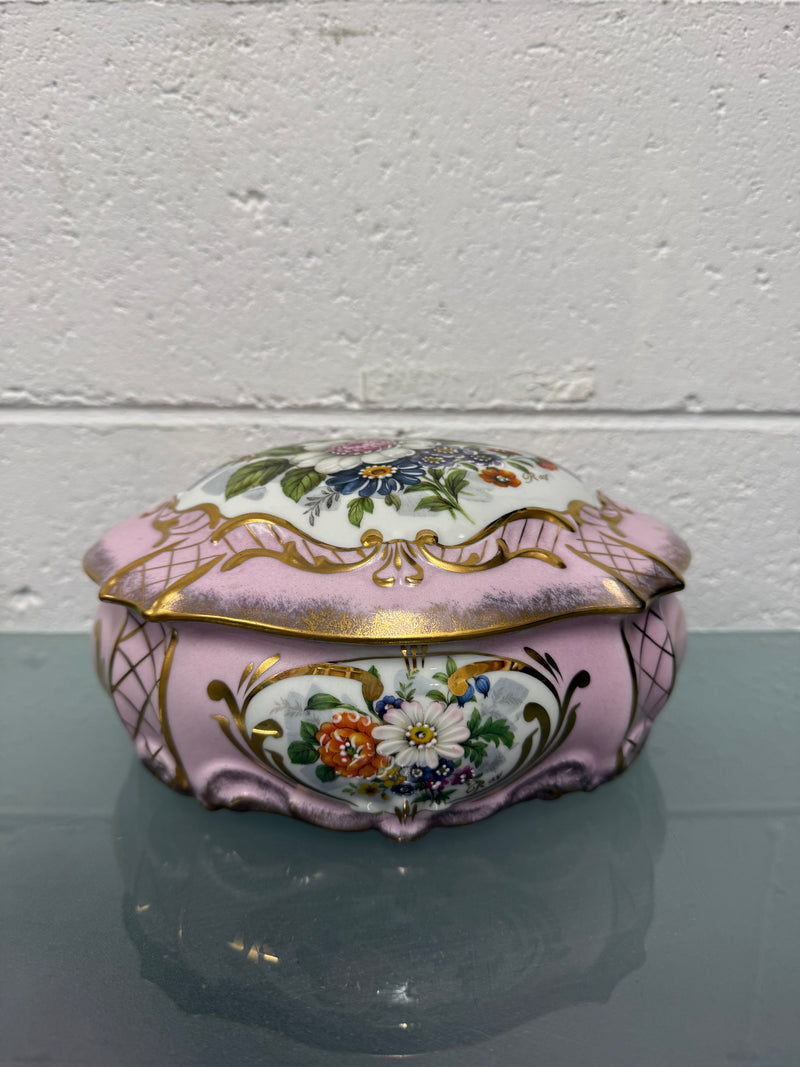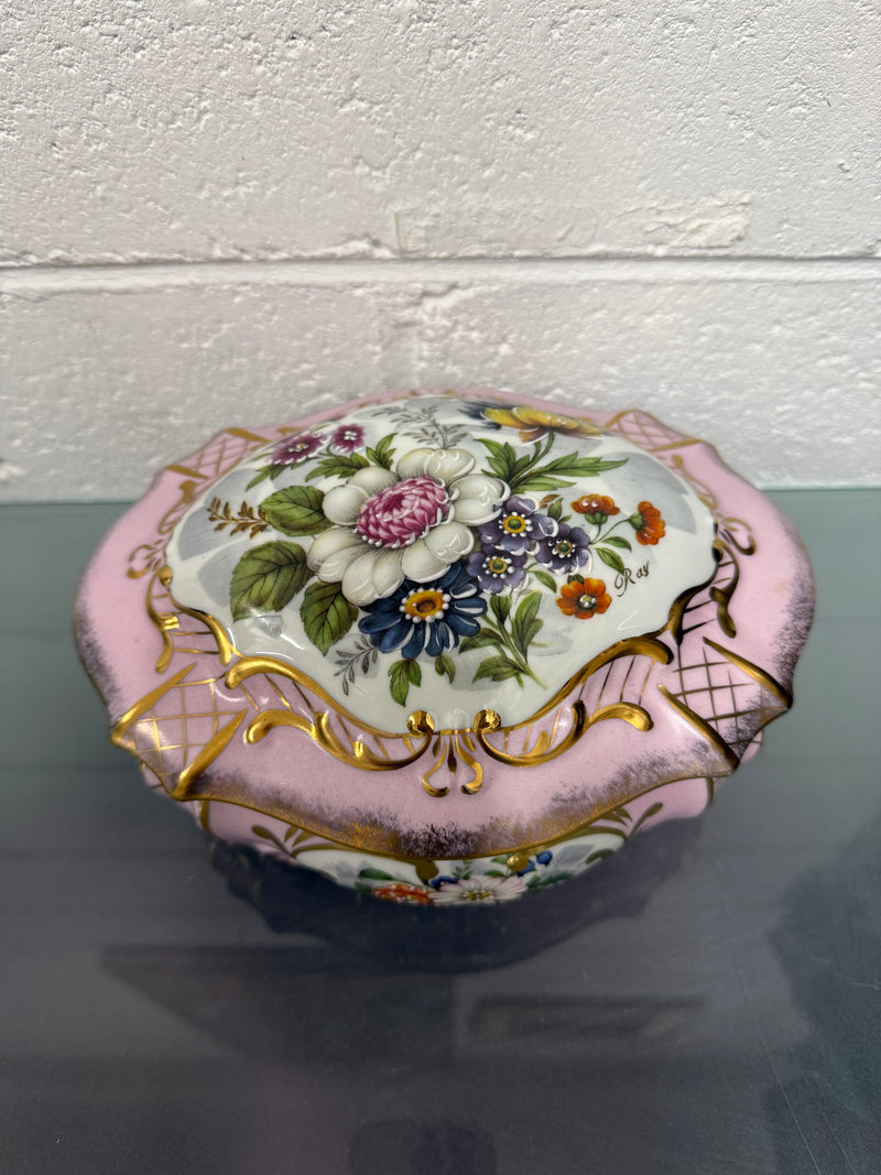 Very pretty large early vintage Limoge trinket/jewellery box - signed. In good original condition. Please see photos as they form part of the description.
