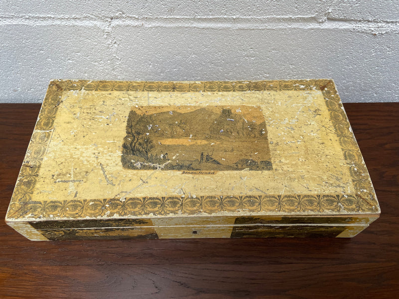 Large vintage / antique trinket / deed box. As found. Please see photos as they form part of the description,.