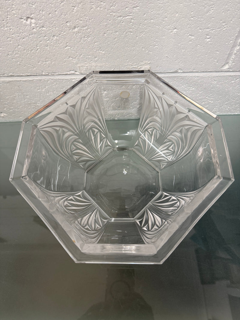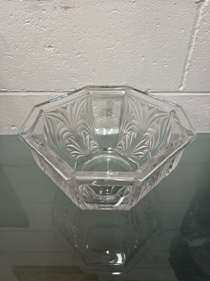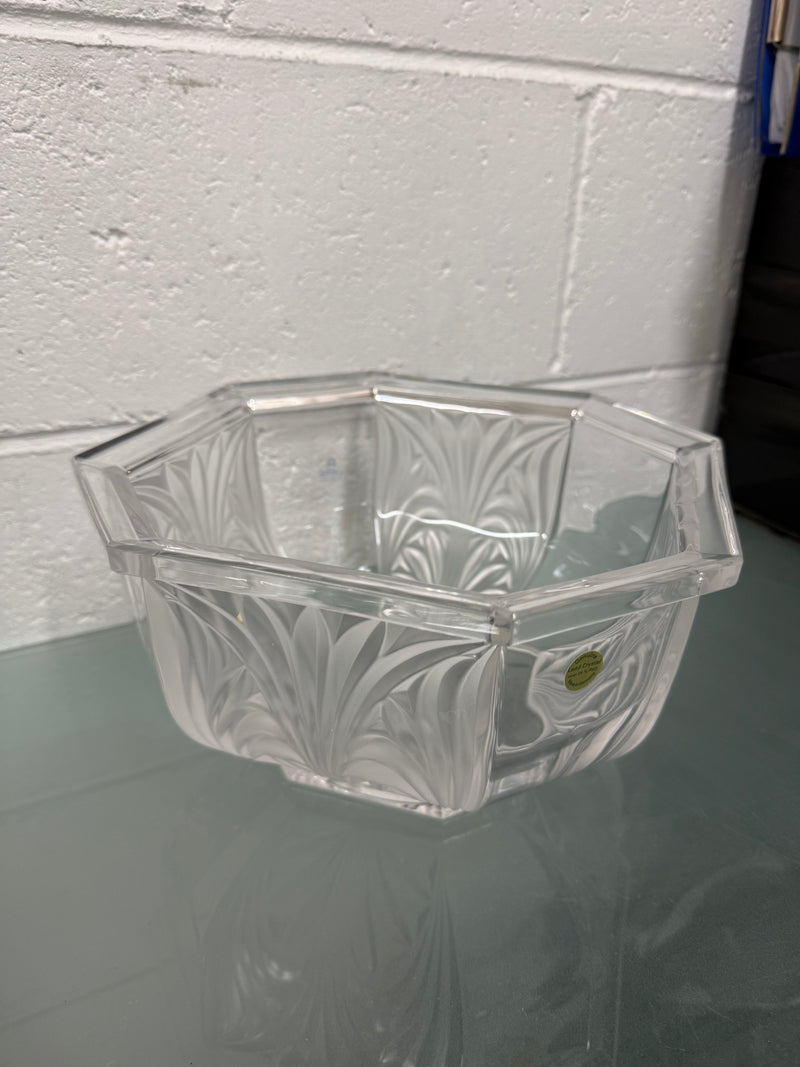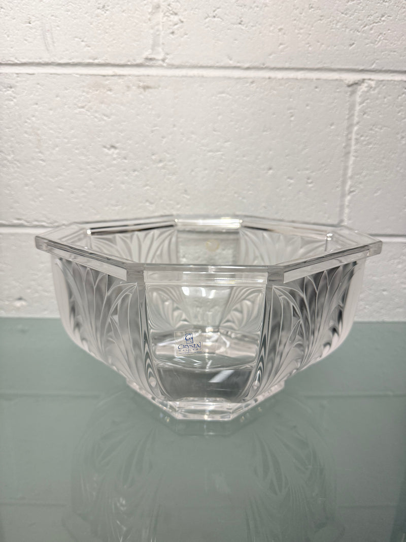 Large vintage German crystal bowl with etched panels. In good original condition. Please see photos as they form part of the description.