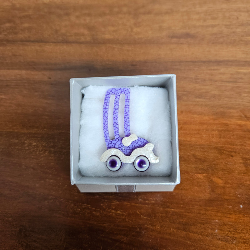 Banger car brooch by French designer Lea Stein. In good original condition. Please see photos as they form part of the description.