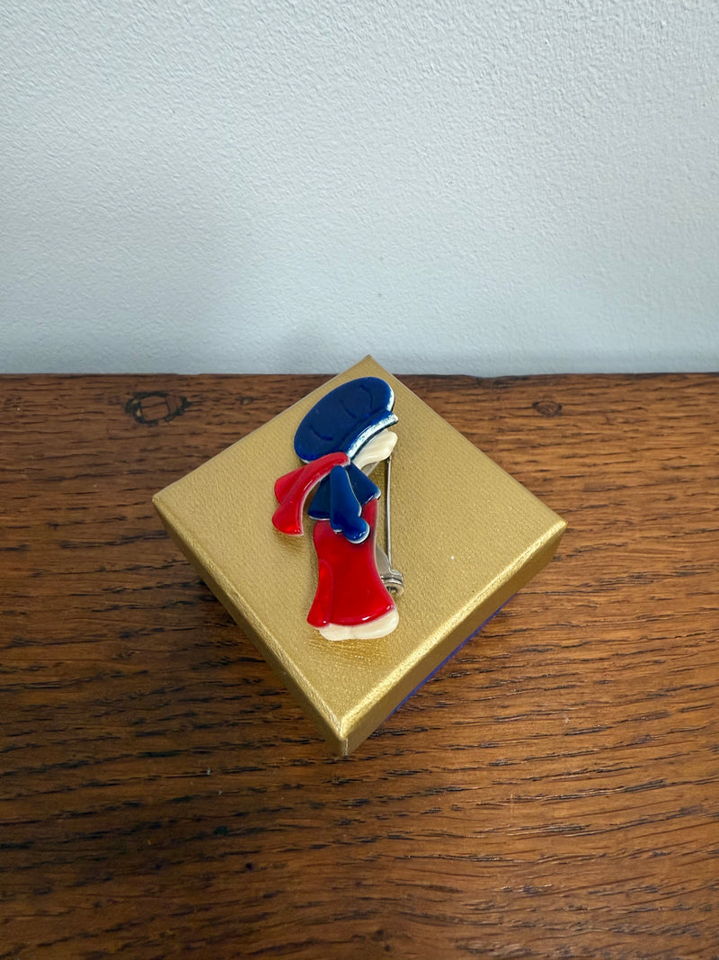 Lea Stein little boy brooch in navy blue and red. In good original condition. Please see photos as they form part of the description.