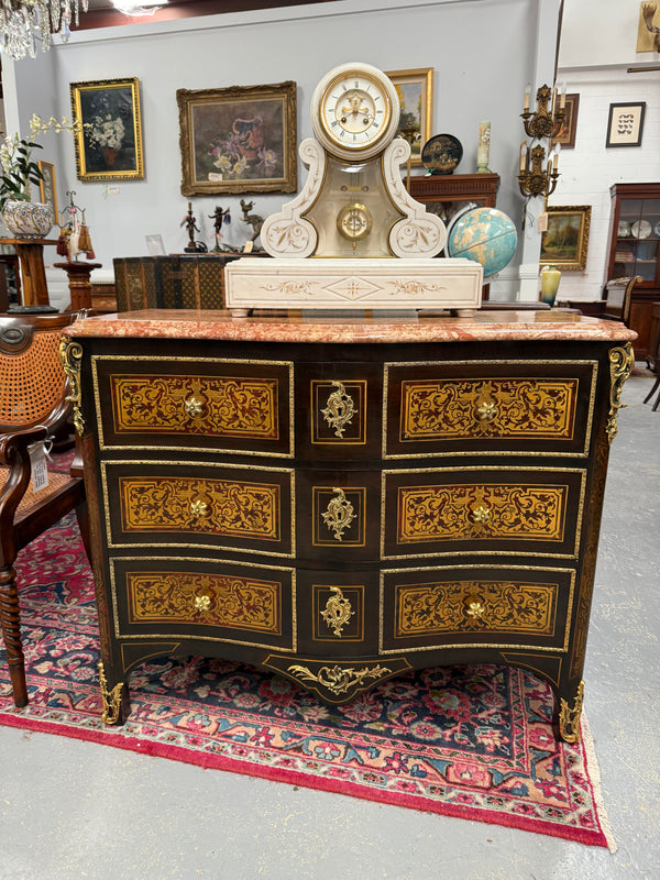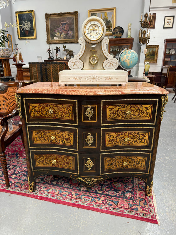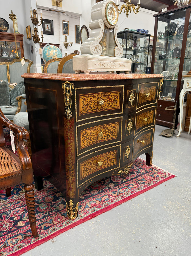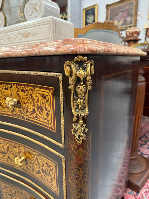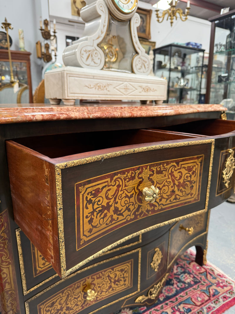 Louis XVI Style Boulle Marble Top Commode in Ebony