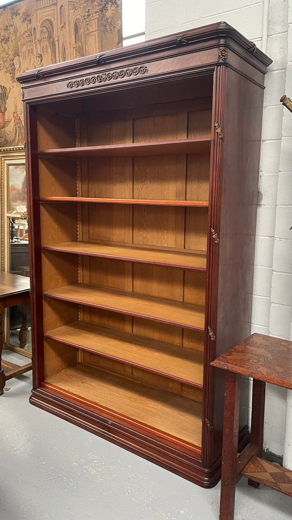 Louis XVI Style Open Mahogany Bookcase With Ormolu Mounts Louis XVI style open Mahogany bookcase with ormolu mounts. Plenty of storage space with five fully adjustable shelves. It is in good ordinal detailed condition and has been sourced from France.