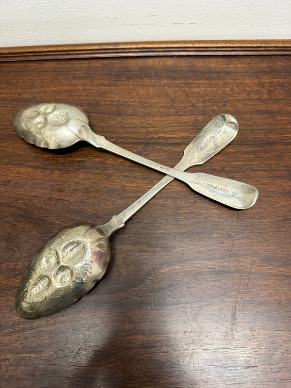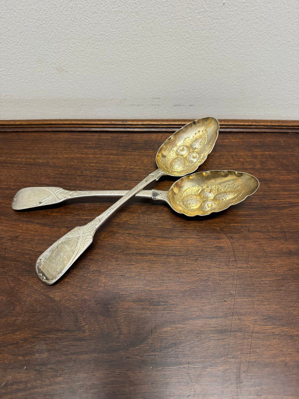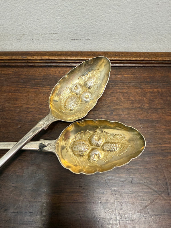 Matched Pair Georgian Sterling Silver Berry Spoons