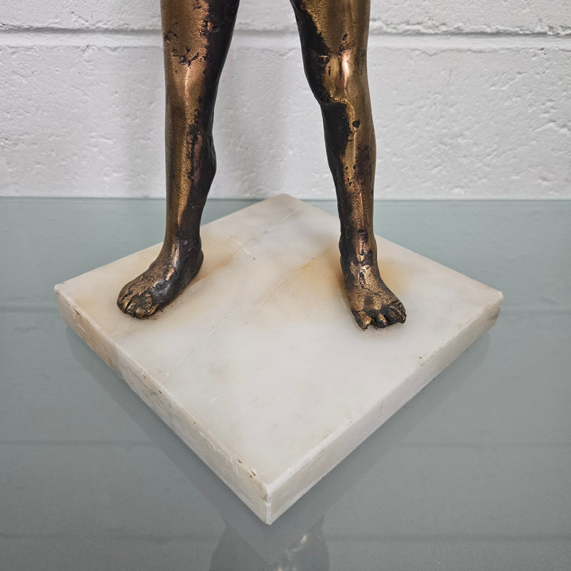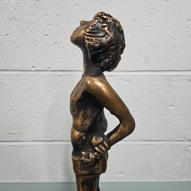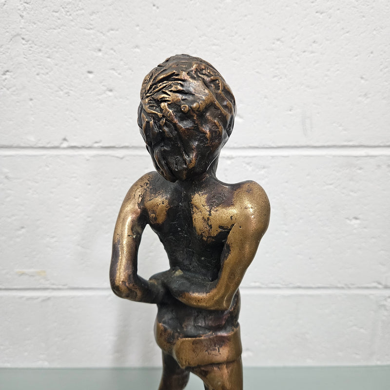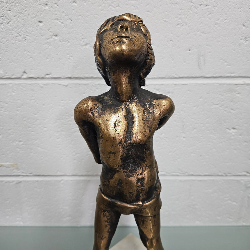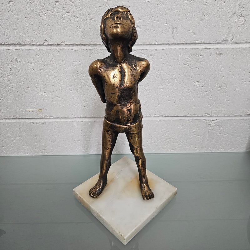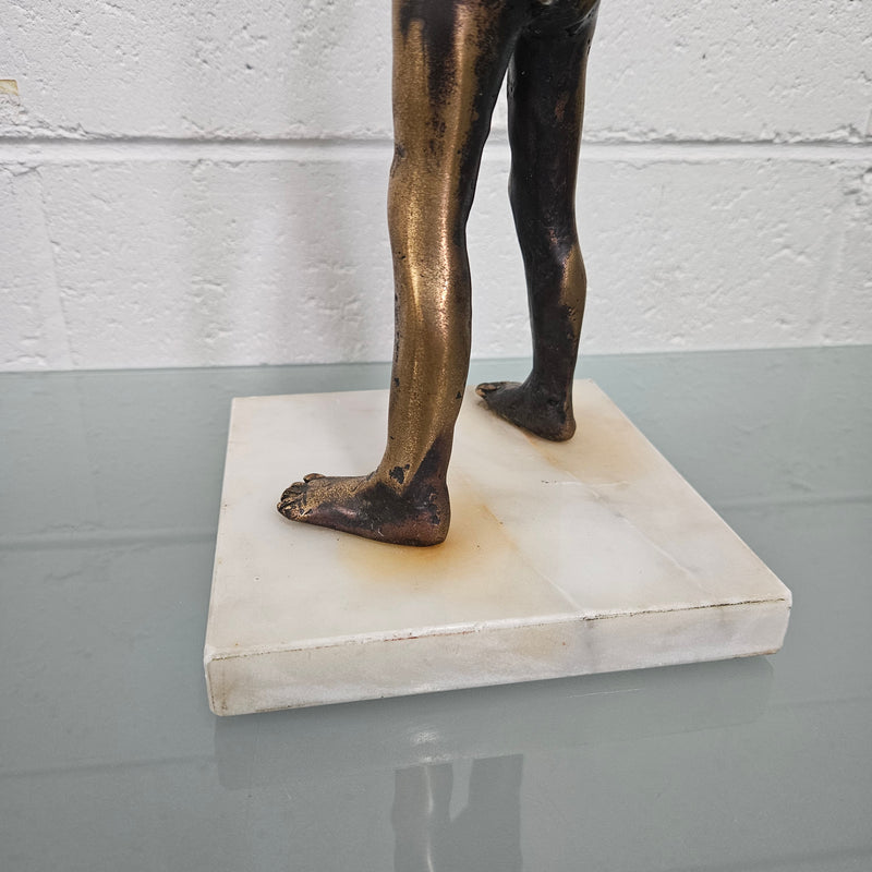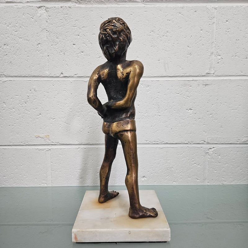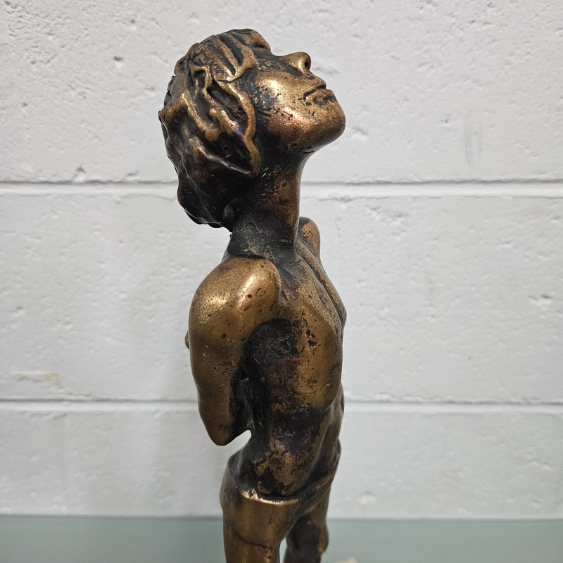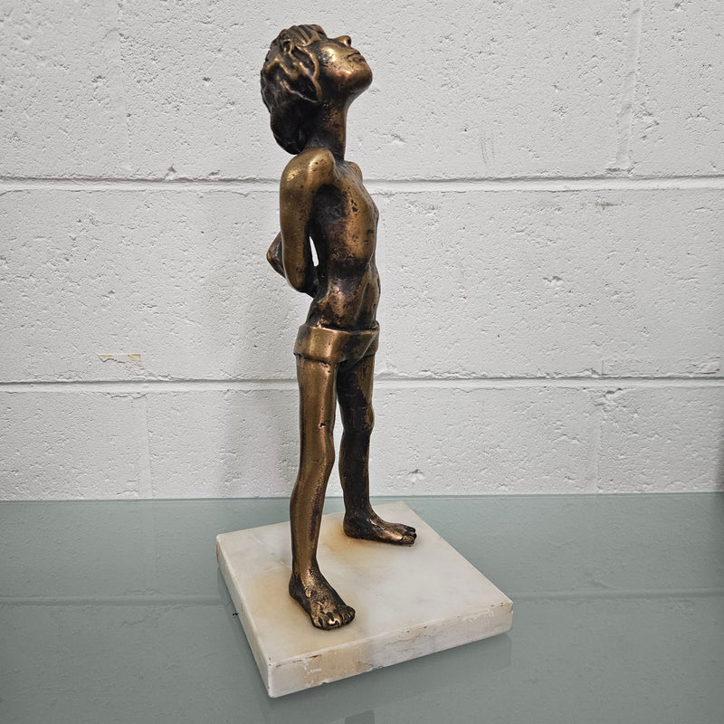 Mid Century modern bronze of a young boy on a marble base. In good condition. Please see photos as they form part of the description.