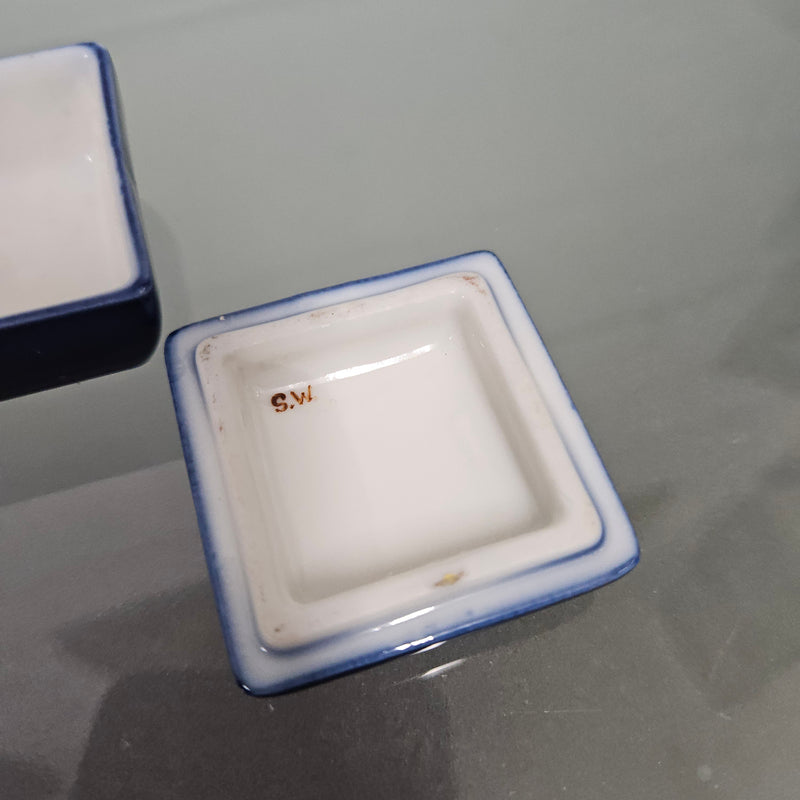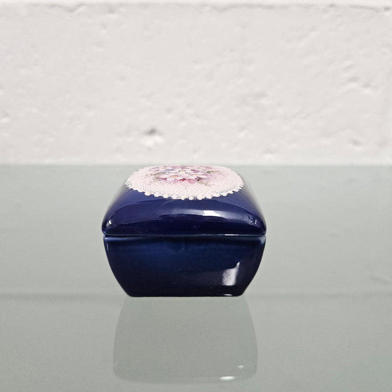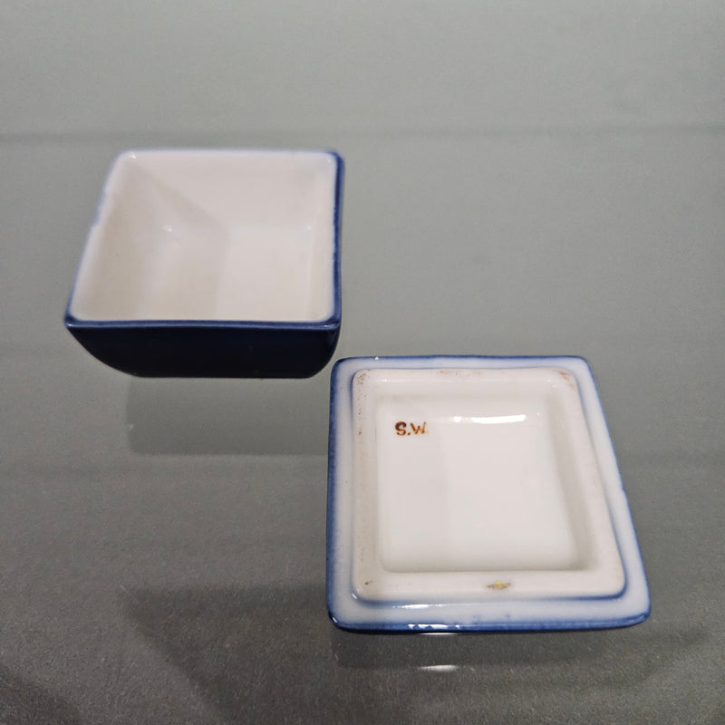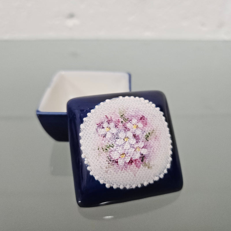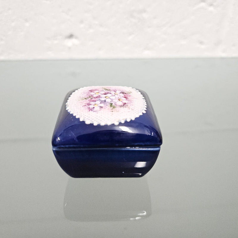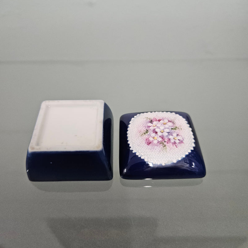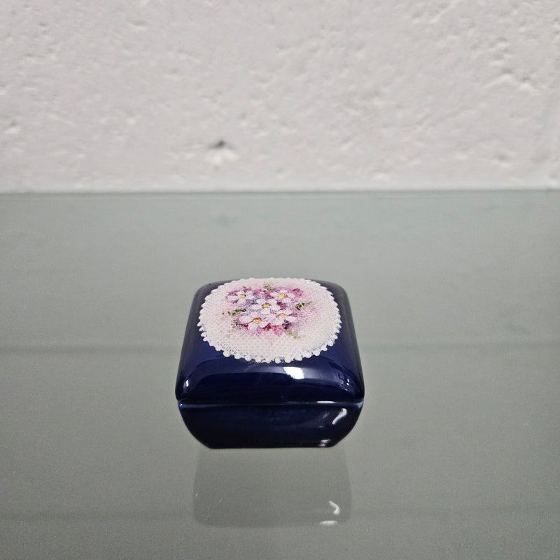 Lovely miniature blue and floral top lidded signed S.W box. It is in good original condition. Please see photos as they form part of the description.