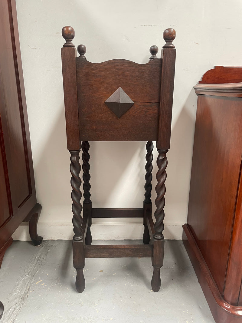 Stunning Jacobean style detailed French oak planter box with barley twisted legs and elegant design. It is in good original condition. Please see photos as they form part of the description.