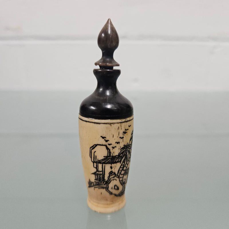 Old Chinese Hand Painted Bone & Horn Snuff Bottle