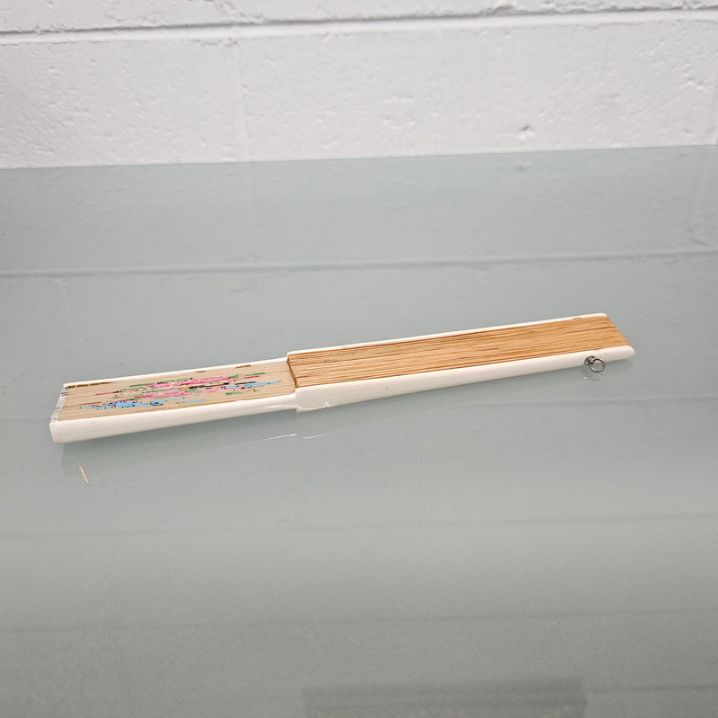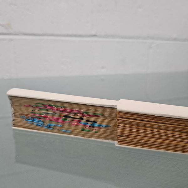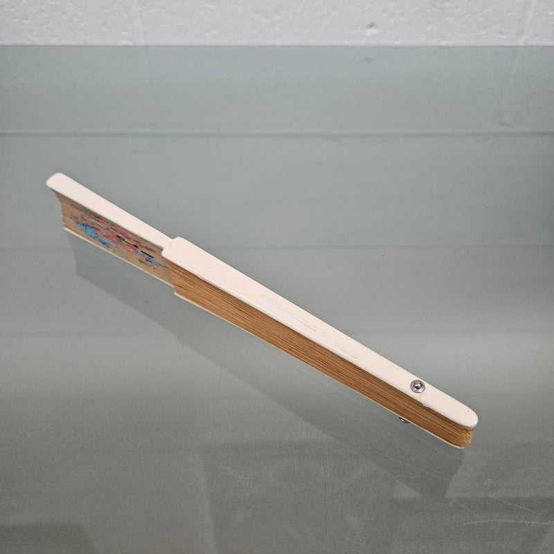Painted vintage fan featuring blue bird. In good original condition. Please see photos as they form part of the description.