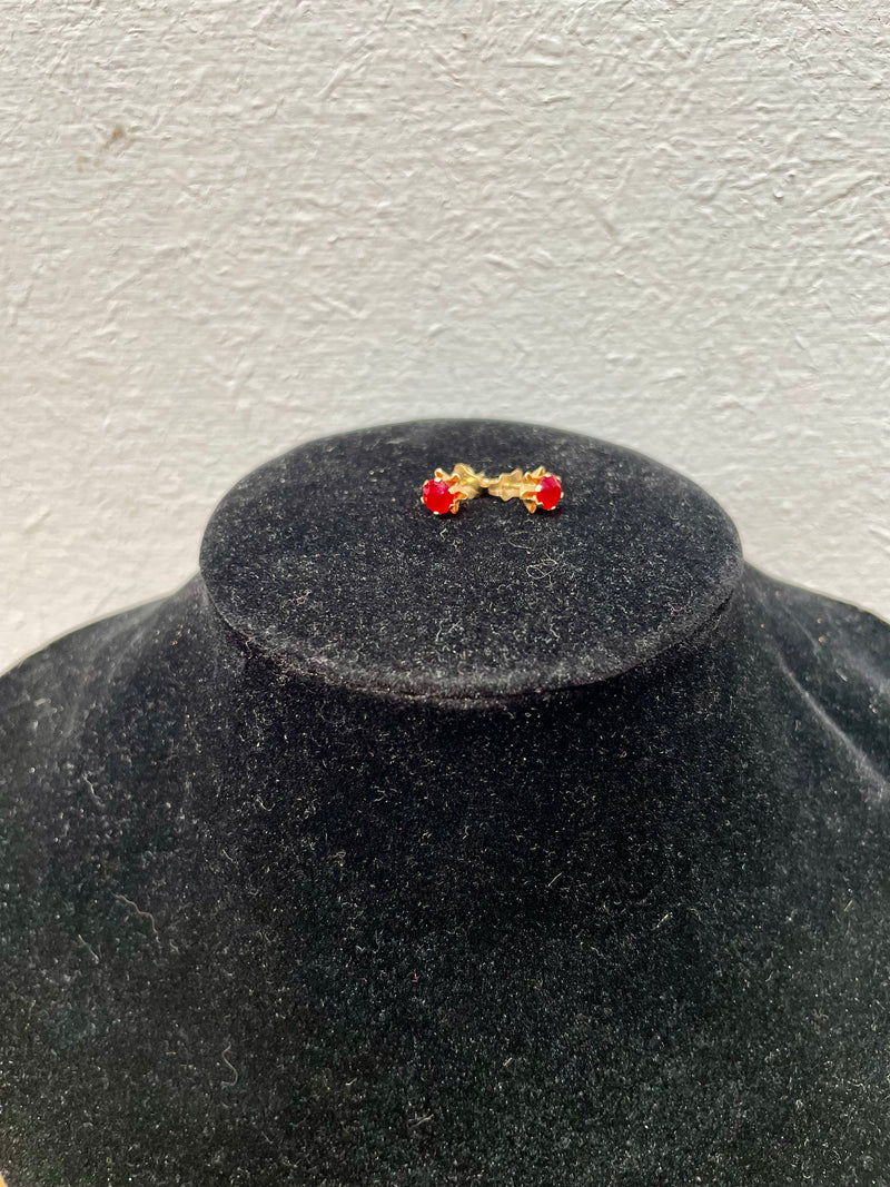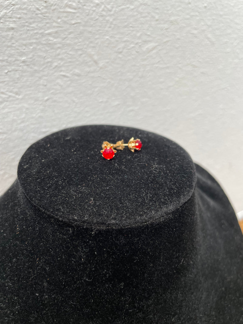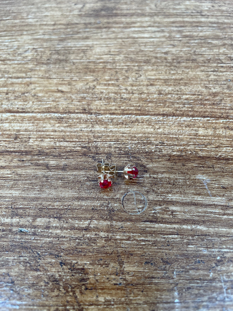 Pair 14k red stone stud earrings. In good original condition. Please see photos as the form part of the description.