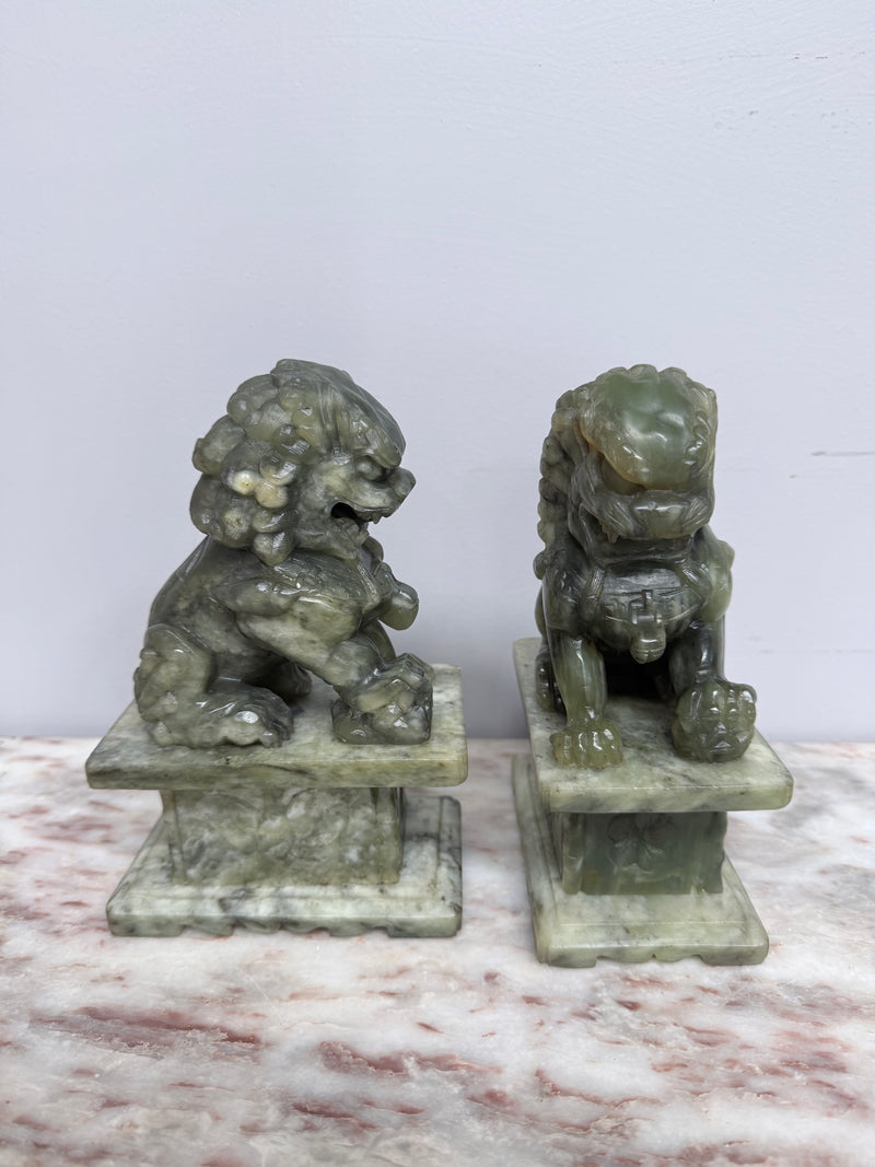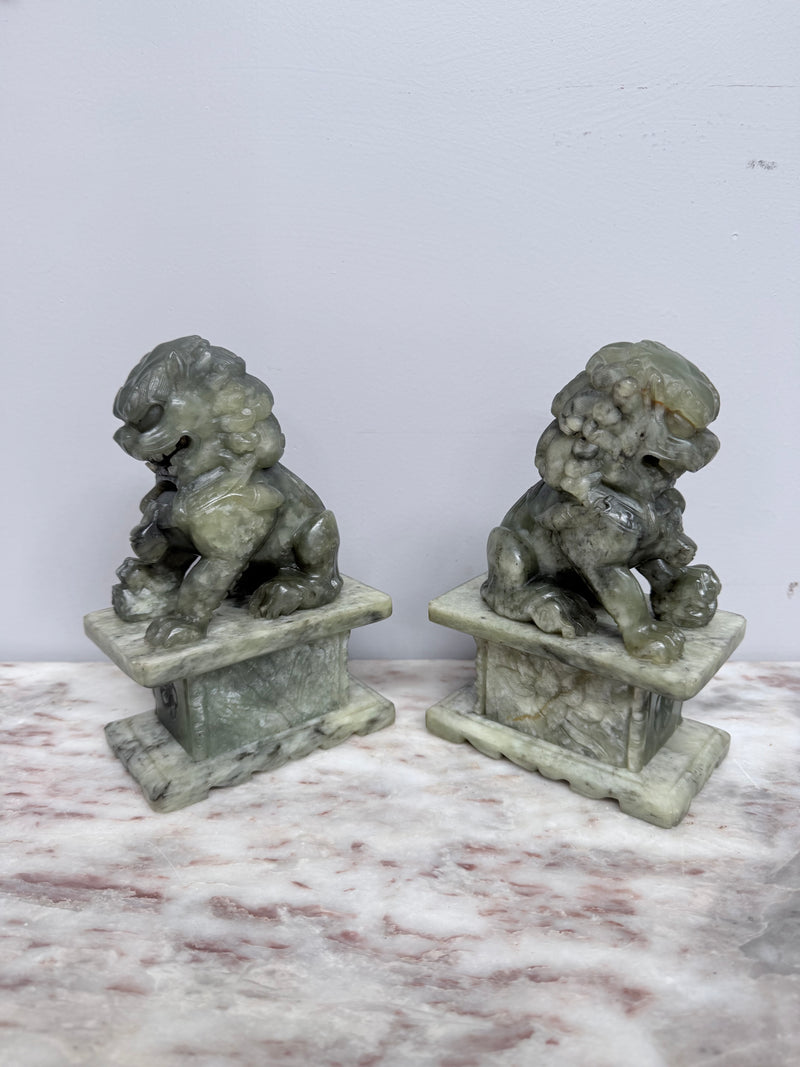 Pair of Carved Soapstone Chinese Foo Dogs