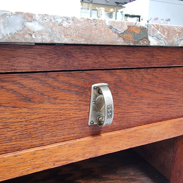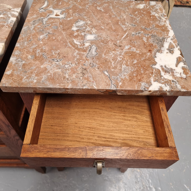 Pair of French Oak Arts & Crafts Marble Top Bedsides