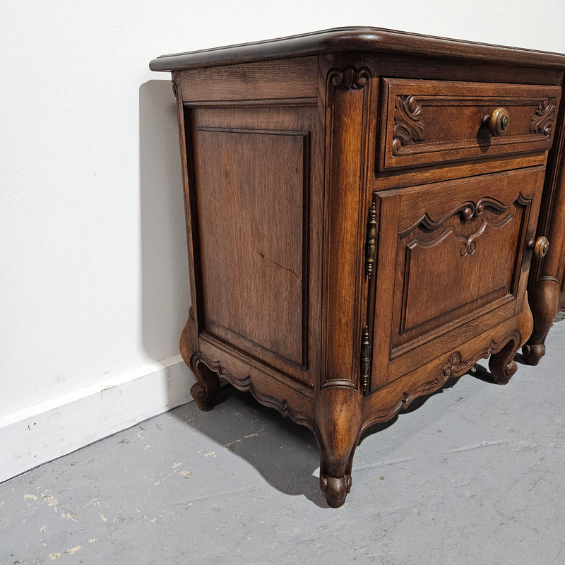 Pair of French Oak Low Wooden Top Bedside Cabinets