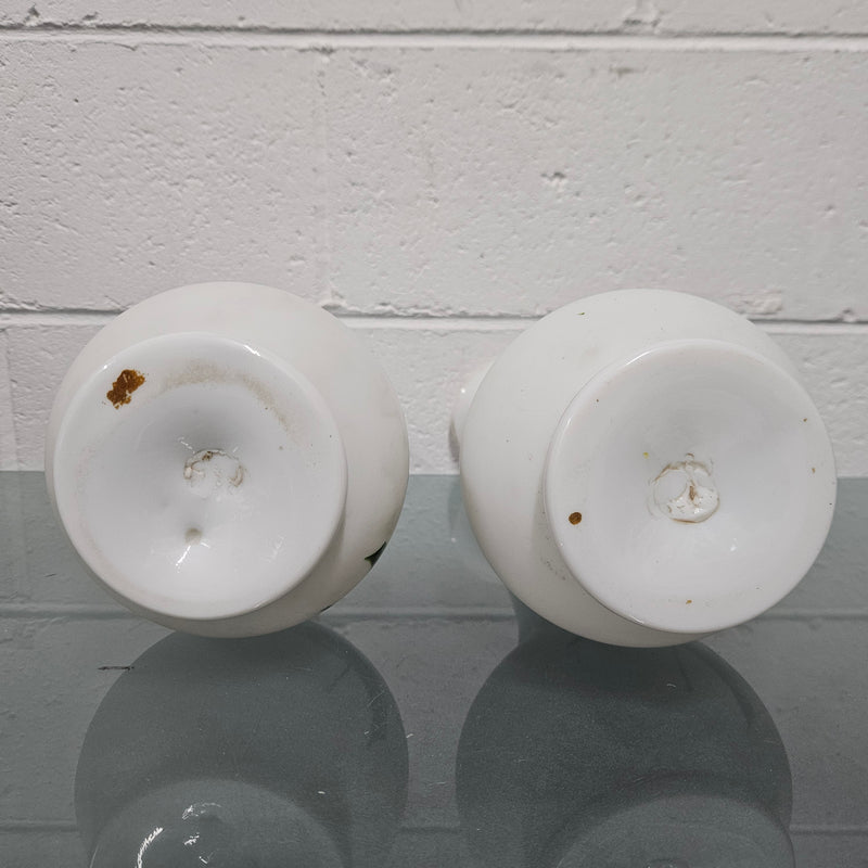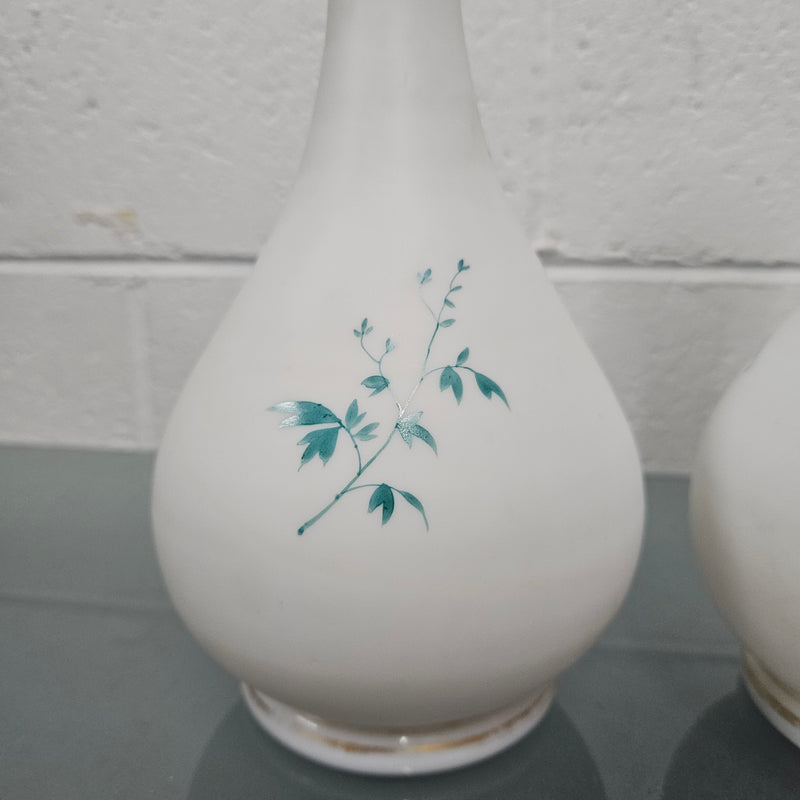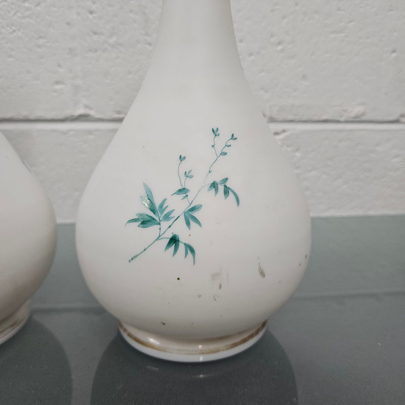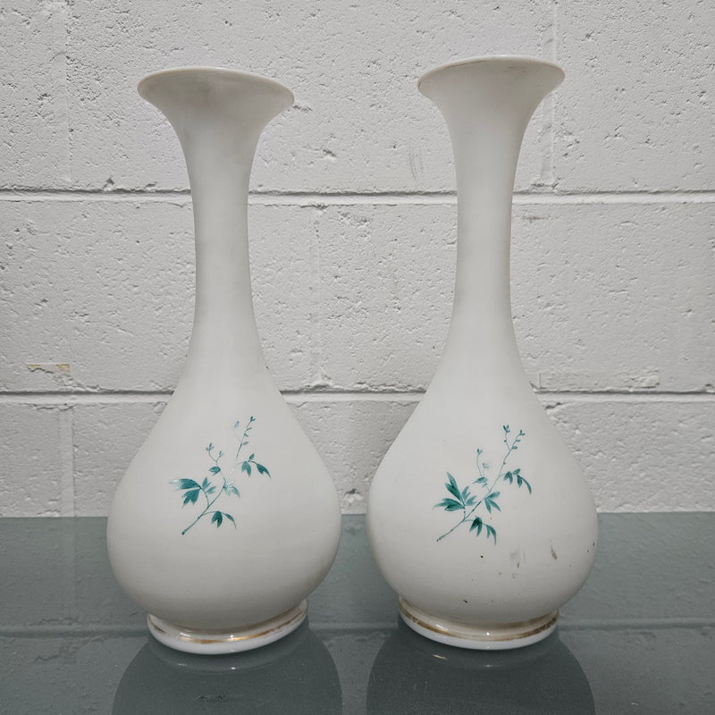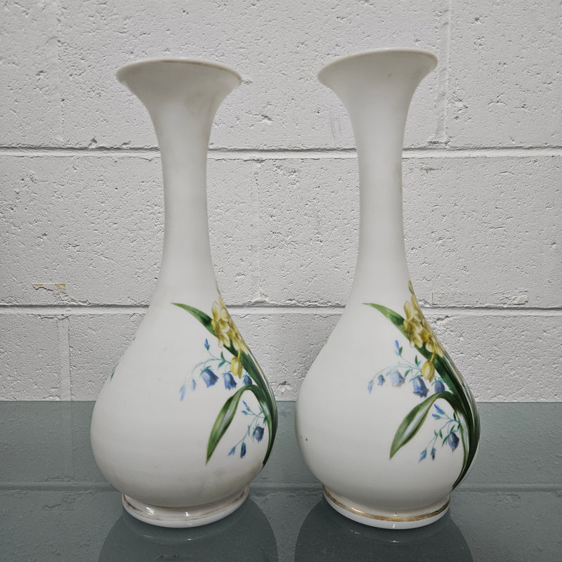 Pair Of Hand Painted Antique Milk Glass Vases Featuring Daffodils