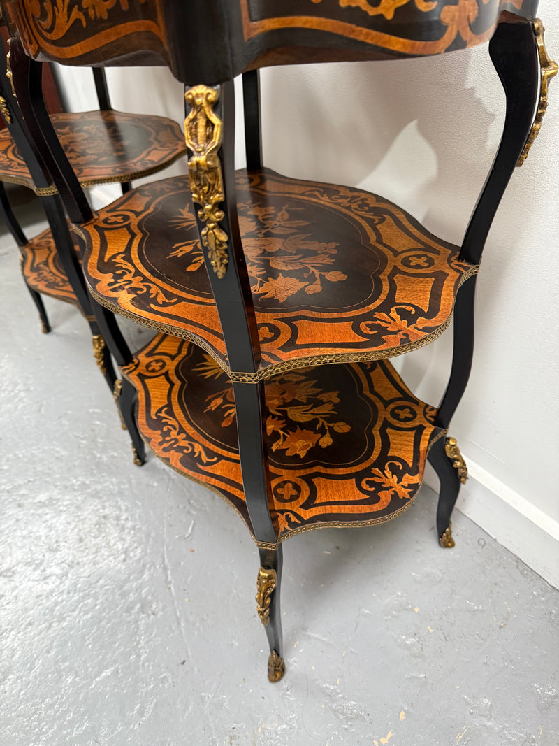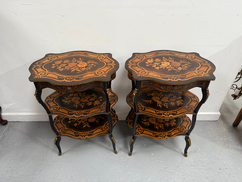 Pair of Late 19th Century Ebonised & Marquetry Three Tier Etageres