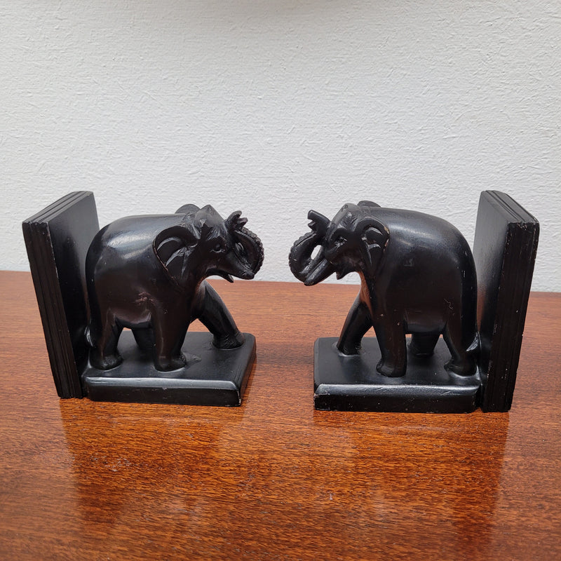 Pair of Vintage carved stone elephant bookends. They have been sourced locally and are in good original condition. Please view photos as they help form part of the description.