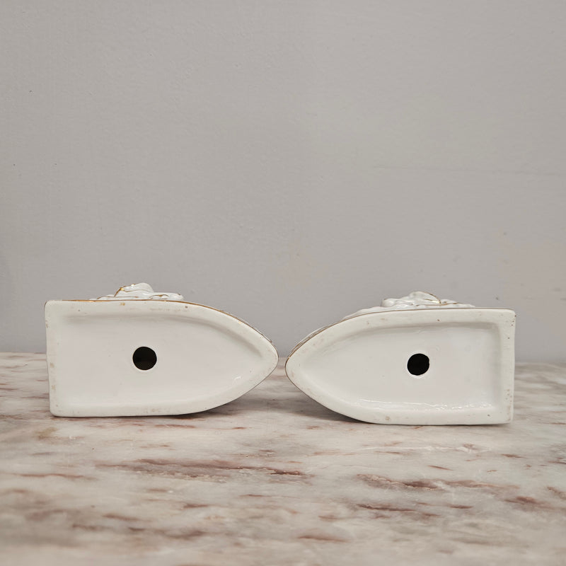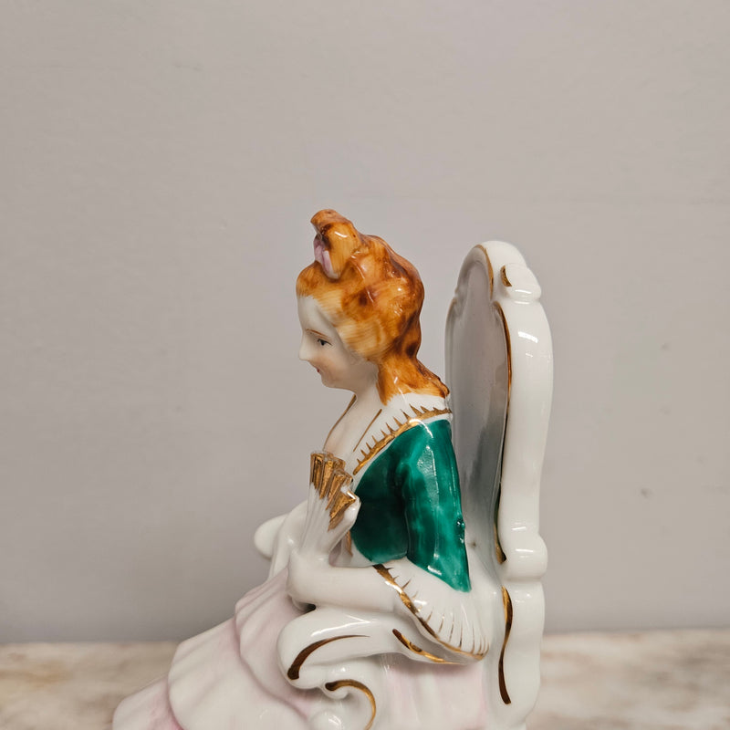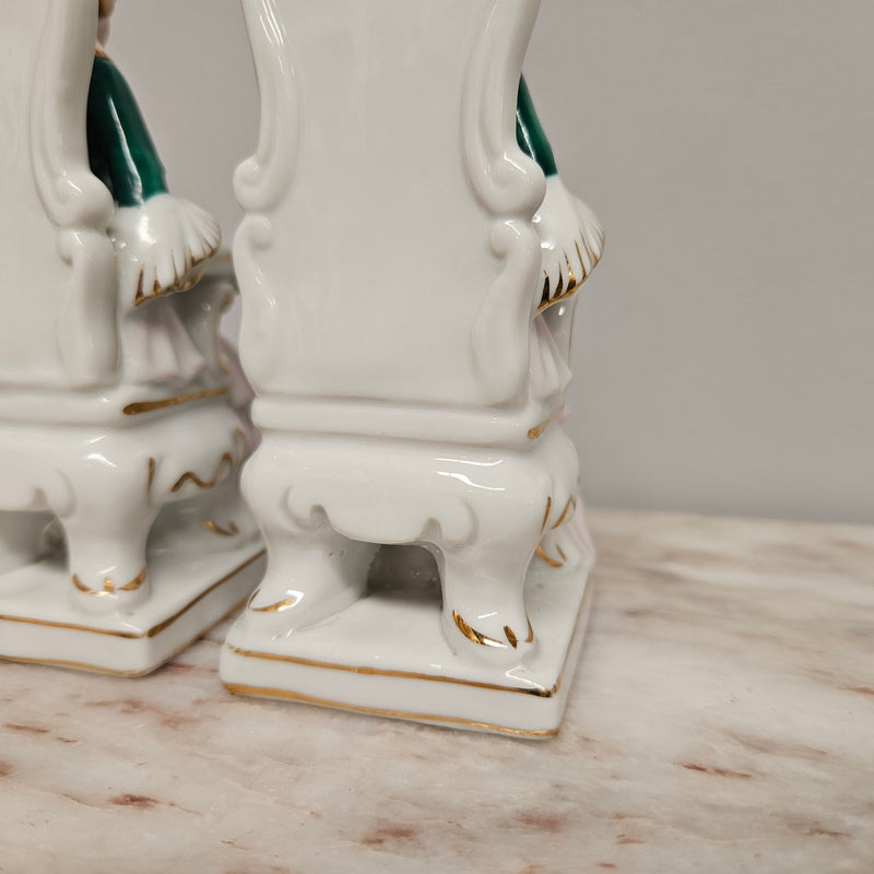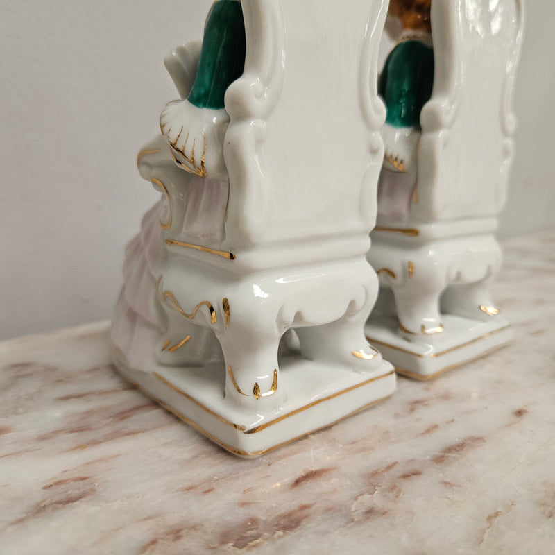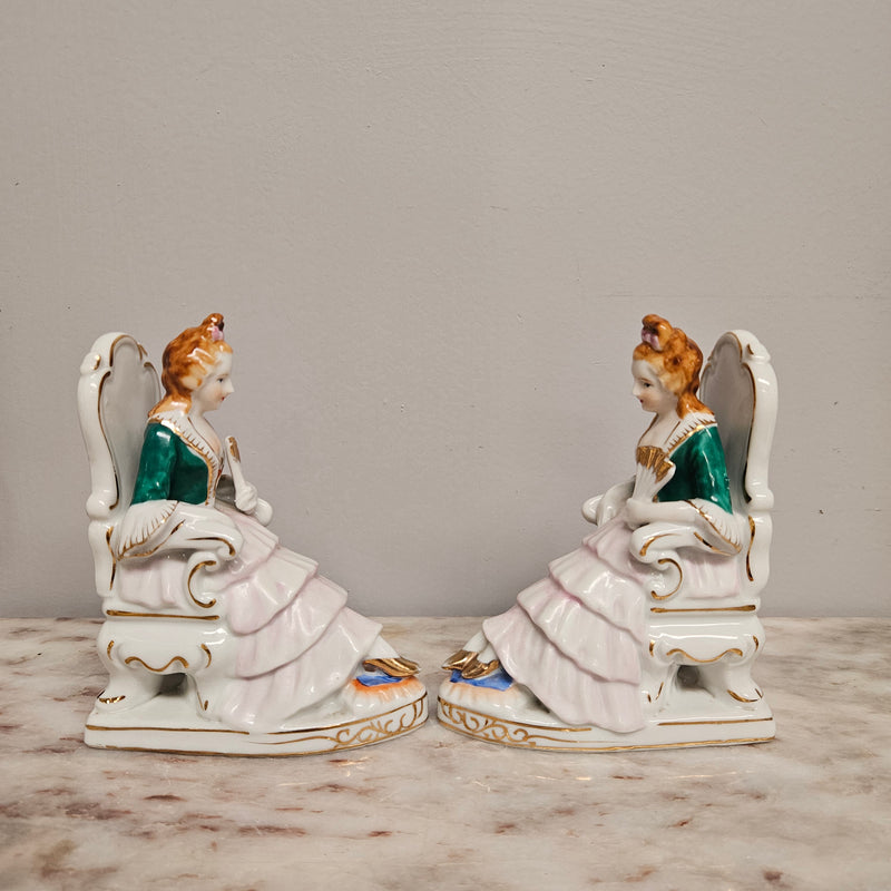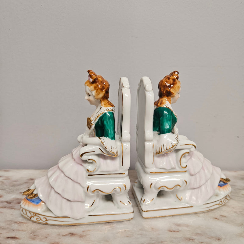 Lovely pair of vintage porcelain bookends of two ladies sitting in throne chairs, it is in good original condition. Please see photos as they form part of the description.