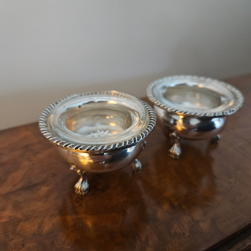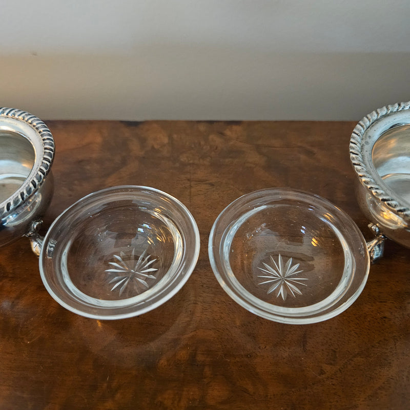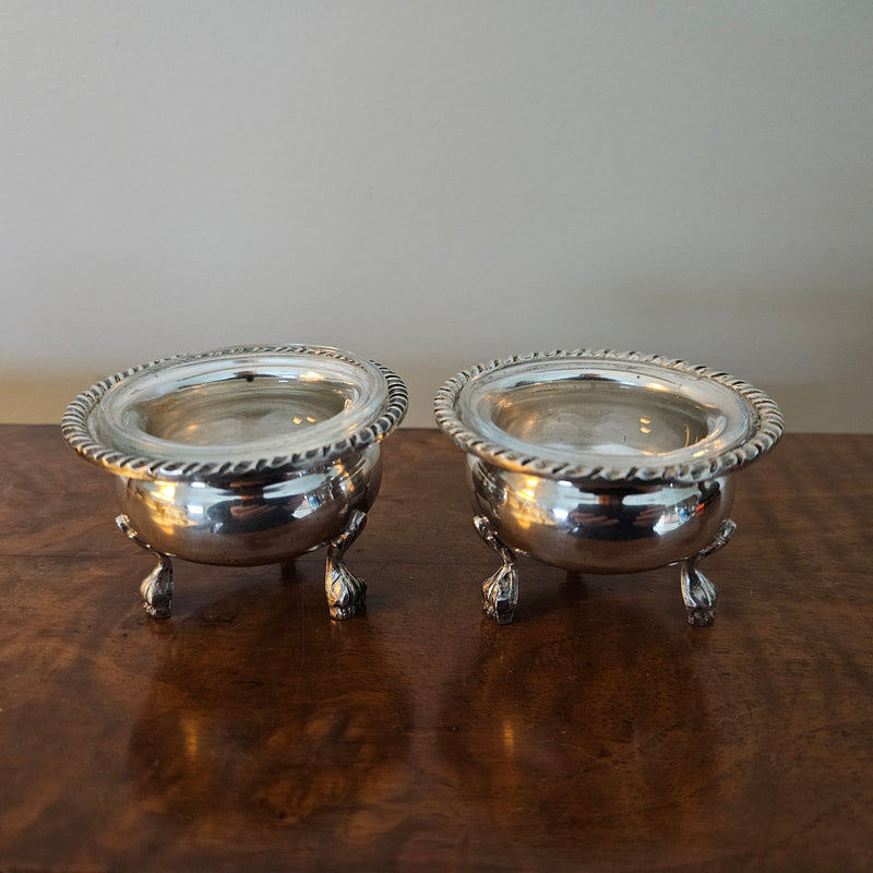 Pair of Vintage Silver & Glass Salts